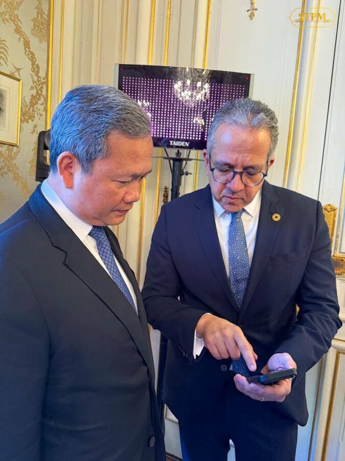 សម្តេចមហាបវរធិបតី ហ៊ុន ម៉ាណែត នាយករដ្ឋមន្ត្រី នៃព្រះរាជាណាចក្រកម្ពុជា អញ្ជើញជួបពិភាក្សាការងារក្រៅផ្លូវការជាមួយ ឯកឧត្តម Duma Gideon Boko ប្រធានាធិបតីបុតស្វាណា, ឯកឧត្ដម Akihiko Nishio អនុប្រធានធនាគារពិភពលោក ទទួលបន្ទុកការអភិវឌ្ឍហិរញ្ញវត្ថុ, លោកសាស្ត្រាចារ្យបណ្ឌិត Khaled EI Enany អគ្គនាយកអង្គការ UNESCO មុនពេលចូលរួមកិច្ចប្រជុំកំពូលស្ដីពីសុខភាពតែមួយ នារសៀលថ្ងៃទី០៧ ខែមេសា ឆ្នាំ២០២៦ (ម៉ោងនៅបារាំង)។