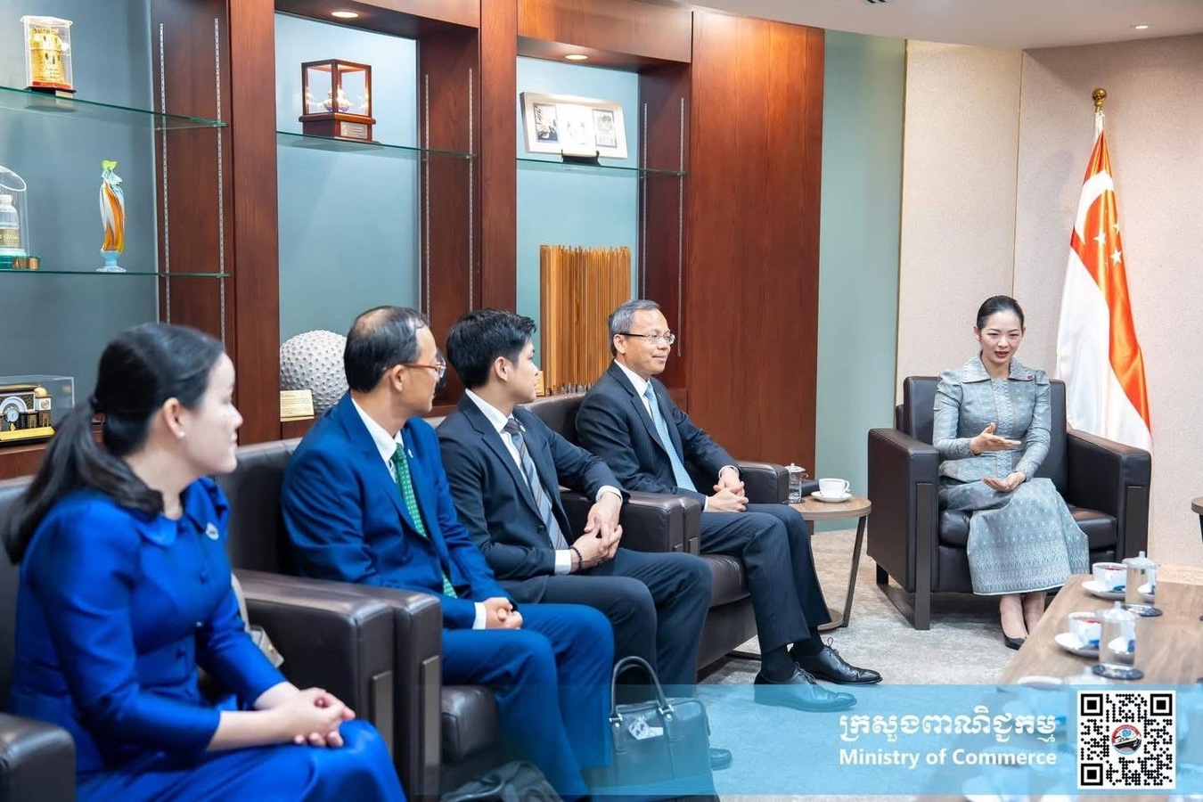 យោងតាមការចុះផ្សាយរបស់ ក្រសួងព័ត៌មាន បានឱ្យដឹងថា នាព្រឹកថ្ងៃសុក្រ ទី១០ ខែមេសា ឆ្នាំ២០២៦ នៅសាធារណរដ្ឋសិង្ហបុរី លោកជំទាវ ចម និម្មល រដ្ឋមន្រ្តីក្រសួងពាណិជ្ជកម្ម បានជួបពិភាក្សាការងារជាមួយលោកជំទាវ Grace Fu រដ្ឋមន្រ្តីក្រសួងបរិស្ថាន និងចីរភាព និងជារដ្ឋមន្ត្រីទទួលបន្ទុកទំនាក់ទំនងពាណិជ្ជកម្ម នៃសាធារណរដ្ឋសិង្ហបុរី។