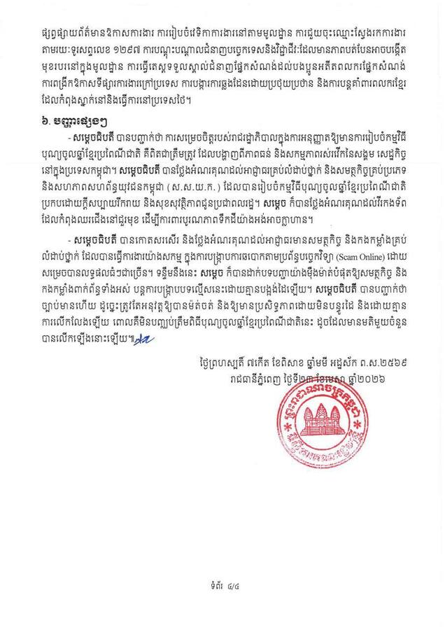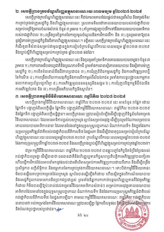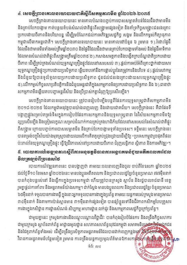 រាជរដ្ឋាភិបាលកម្ពុជា ក្រោមការដឹកនាំរបស់ សម្តេចមហាបវរធិបតី ហ៊ុន ម៉ាណែត នាយករដ្ឋមន្ត្រី នៃព្រះរាជាណាចក្រកម្ពុជា បន្តនិរន្តរភាពគោលការណ៍គ្រឹះរបស់ សម្តេចអគ្គមហាសេនាបតីតេជោ ហ៊ុន សែន។ កងយោធពលខេមរភូមិន្ទ បាននិងកំពុងអនុវត្តភារកិច្ចការពារជាតិ ចូលរួមក្នុងការអភិវឌ្ឍសង្គម និងជួយសង្គ្រោះគ្រប់រូបភាព និងអនុវត្តរាល់បទបញ្ជារបស់រាជរដ្ឋាភិបាលទាន់ពេលវេលា និងមានប្រសិទ្ធភាព៕