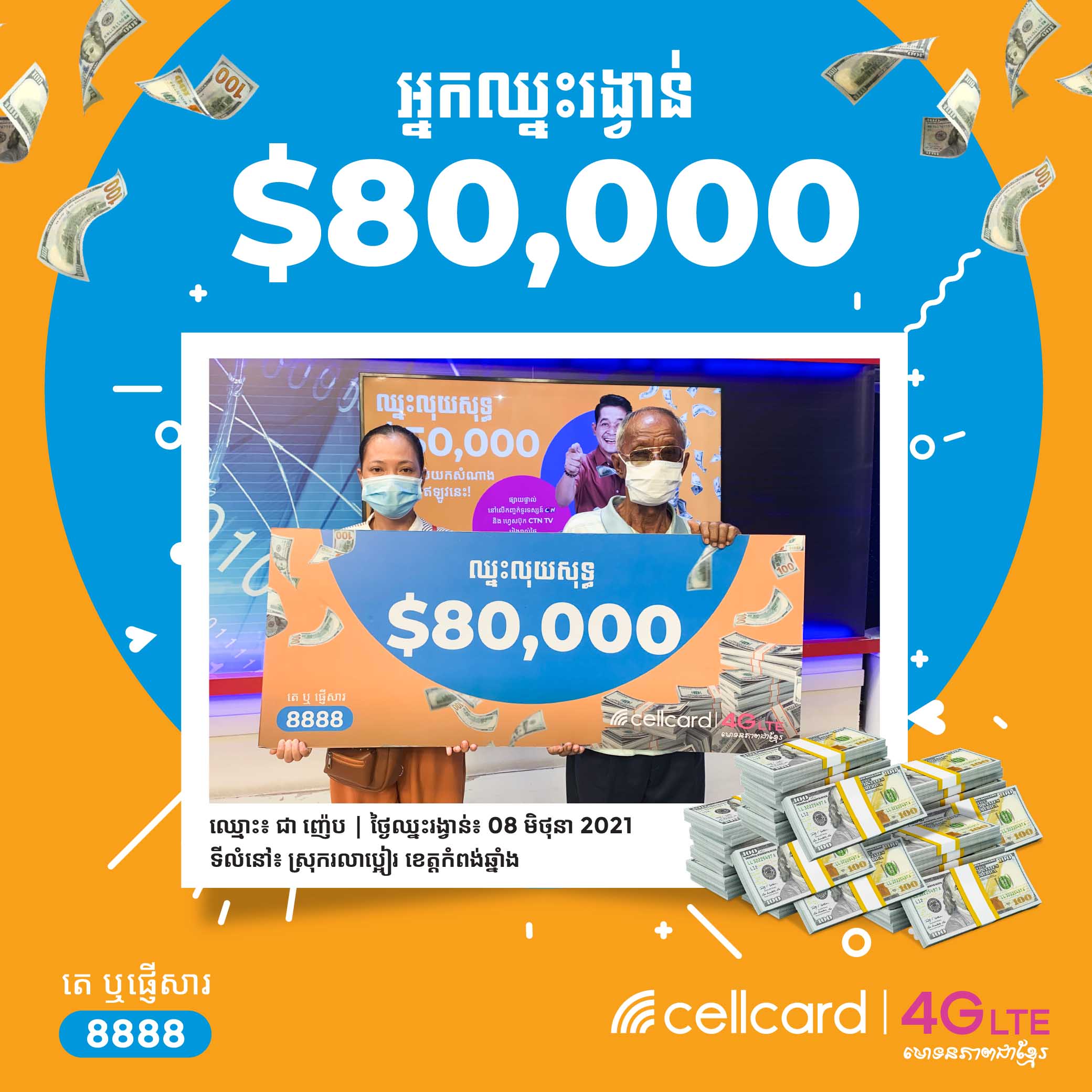 អតិថិជនមហាសំណាងបានឈ្នះរង្វាន់ $80,000 ក្នុងកម្មវិធី «ឈ្នះលុយសុទ្ធ $10,000 ដុល្លាររៀងរាល់ថ្ងៃ» ពីសែលកាត!