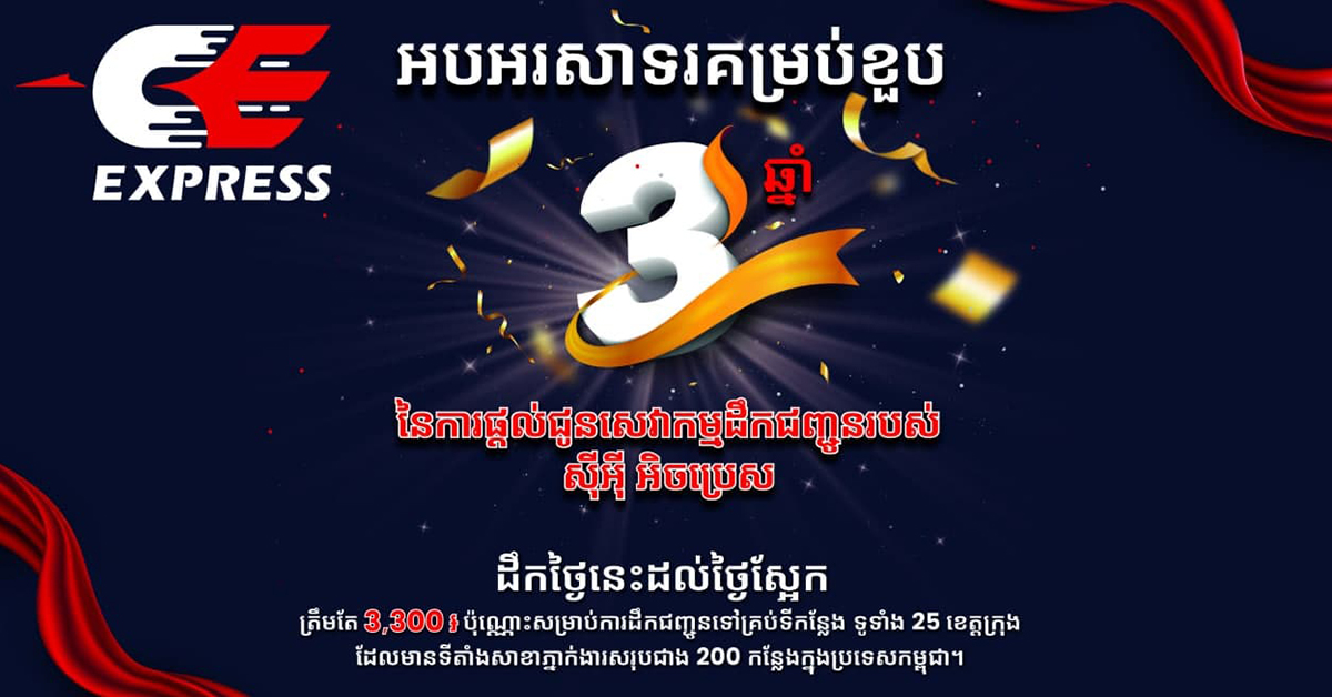 ក្រុមហ៊ុន សុីអុីអិចប្រស (CE EXPRESS) ផ្តល់ជូនប្រូម៉ូសិនដ៏ពិសេសមិនធ្លាប់មាន ក្នុងឱកាសគម្រប់ខួប ៣ឆ្នាំ