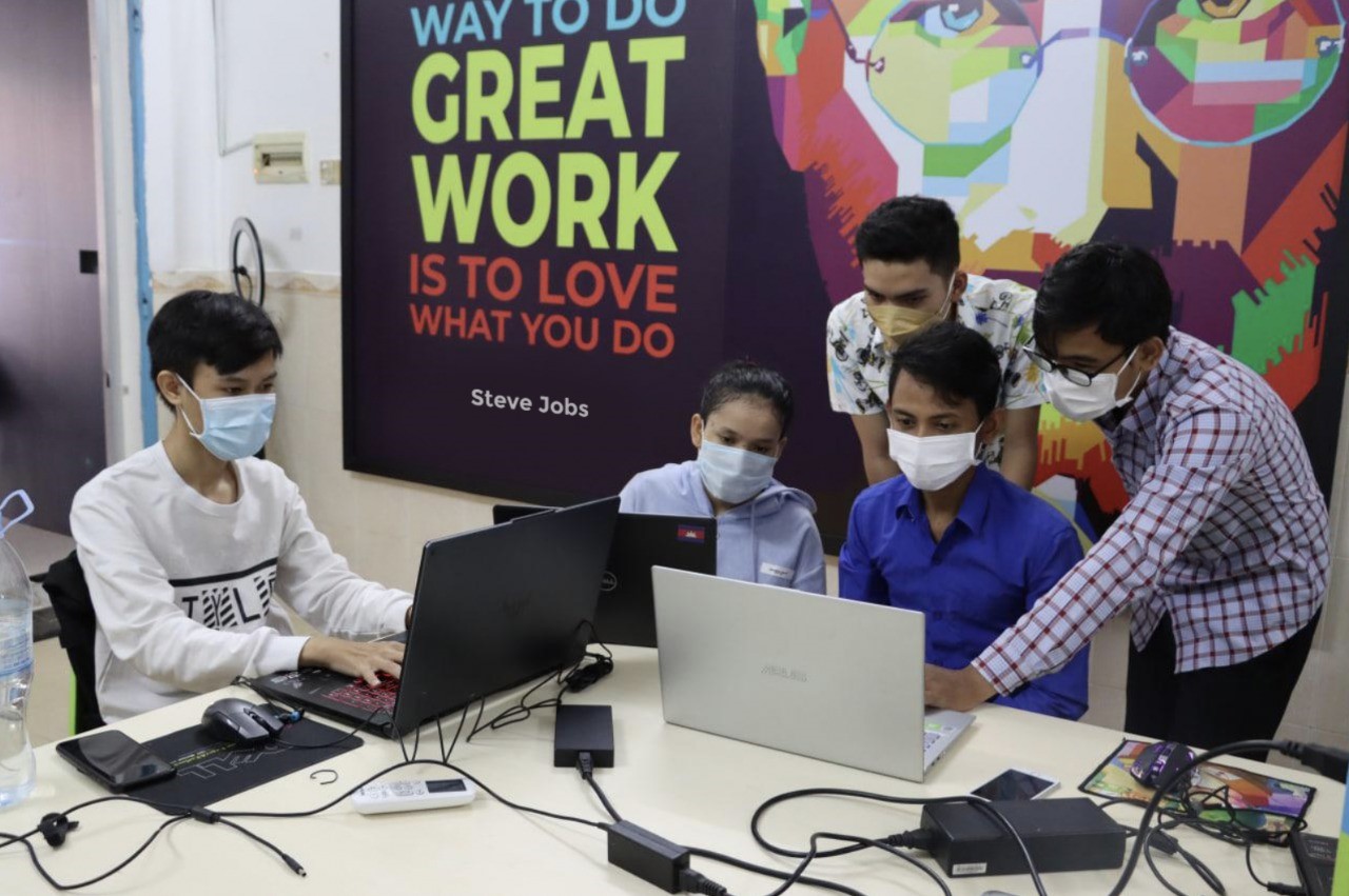 សិស្សនិស្សិតត្រៀមខ្លួនដើម្បីរៀបចំគម្រោងក្នុងក្តីស្រម៉ៃរបស់ខ្លួនក្នុងវគ្គ Bootcamp ក្រោមការសហការរវាង សែលកាត និង SabaiCode ឆ្នាំ ២០២១នេះ