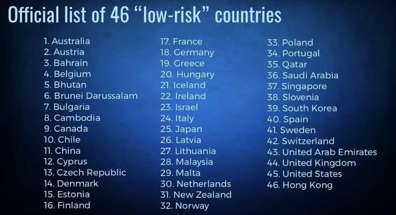 គួរបញ្ជាក់ថា ការបង្កើនចំនួនប្រទេសរហូតដល់ ៤៦ និងបូកថែមទីក្រុងស្វយ័តហុងកុង របស់ប្រទេសចិនថែមមួយទៀតនេះ បានកើតមានឡើងតែប៉ុន្មានថ្ងៃប៉ុណ្ណោះ បន្ទាប់ពីថៃបានប្រកាសថា នឹងអនុញ្ញាតការធ្វើដំណើរ ដោយមិនចាំបាច់តម្រូវឲ្យធ្វើចត្តាឡីស័ក ពេលមកដល់ប្រទេសនេះ តែពីសំណាក់ប្រទេសចំនួន ១០ប៉ុណ្ណោះ។