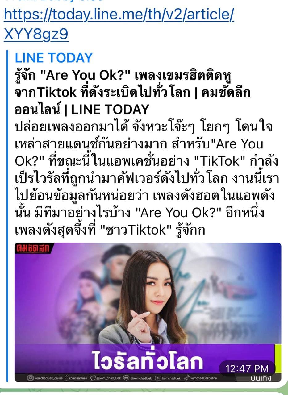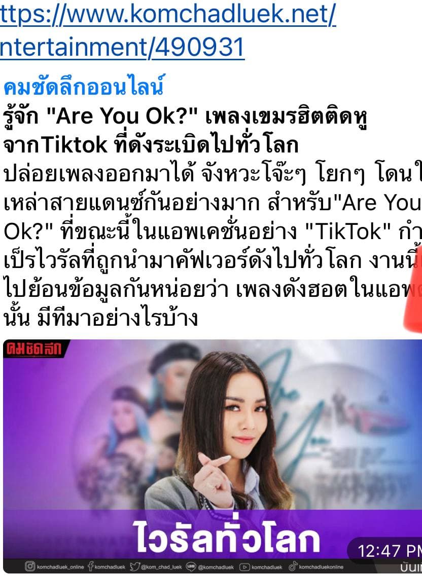 ទទឹមគ្នានោះដែរបន្ទាប់ពីបទ “Are you ok” ចេញផ្សាយភ្លាមគេក៏ឃើញ មានសារព័ត៌មានទាំងជាតិនិងអន្តរជាតិផ្សាយពីបទចម្រៀងនេះជាច្រើន ប្រទេសផងដែរ មានដូចជាថៃ ឥណ្ឌាជាដើម។