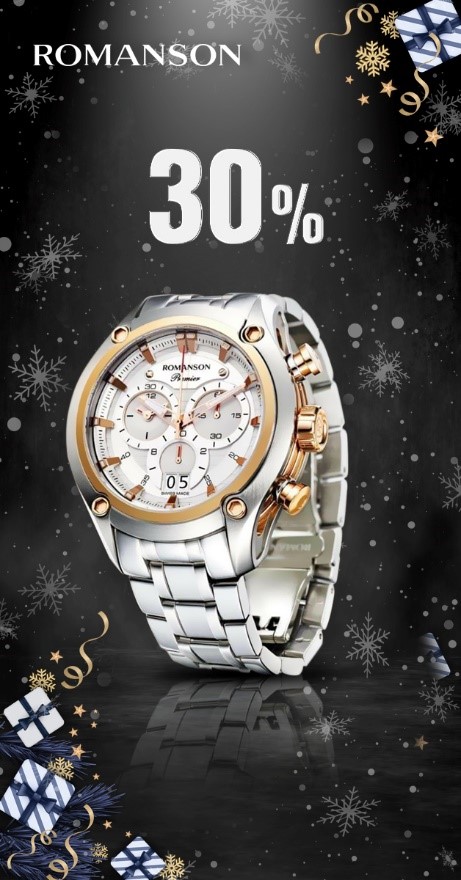 (ភ្នំពេញ)៖ ROMANSON ជានាឡិកាស្វីស និងល្បីជាងគេនៅប្រទេសកម្ពុជា បាននាំមកនូវកម្មវិធីដ៏អស្ចារ្យសម្រាប់ដំណាច់ឆ្នាំ២០២១នេះ គឺចាប់ពីថ្ងៃទី១៥ ខែធ្នូ ឆ្នាំ២០២១ ដល់ថ្ងៃទី១ ខែមករា ឆ្នាំ២០២២ មានការបញ្ចុះតម្លៃ ៣០% និង ៥០% គ្រប់ម៉ូត គ្រប់ម៉ាក ទាំងអស់។ កម្មវិធីនេះធ្វើឡើងនៅគ្រប់សាខារបស់ ROMANSON ដែលជាហាងមានលក់គ្រប់ផលិតផលដូចជា នាឡិកាជាច្រើនម៉ាក, វ៉ែនតា POLICE, Chopard និង ESCADA, ទឹកអប់ម៉ាកល្បីៗ រួមទាំងម៉ាក J.ESTINA ផងដែរ។
