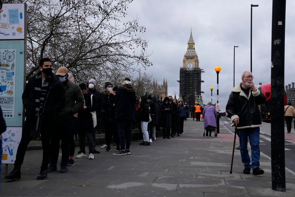 អង់គ្លេសមើលឃើញករណីឆ្លងកូវីដ-១៩ «ជាង១៨០,០០០នាក់ក្នុង១ថ្ងៃ», ជាកំណត់ត្រាខ្ពស់់បំផុតលើកទី ២ ដោយសារ «អូមីក្រុង»