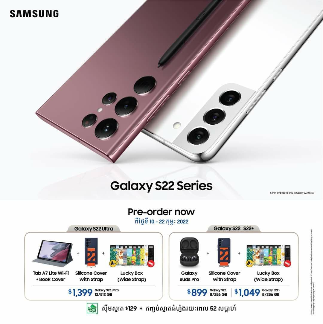 ដើម្បីឆ្លើយតបទៅនឹងតម្រូវការរបស់អតិថិជន និងដើម្បីឱ្យអតិថិជនរបស់ខ្លួនទាំងអស់ទទួលបាននូវ បទពិសោធន៍ថ្មី…ភាពអស្ចារ្យថ្មីនៃកំពូលបច្ចេកវិទ្យាជំនាន់ចុងក្រោយ (Break the rules of Innovation) ក្រុមហ៊ុនក៏នឹងដាក់ឱ្យអតិថិជនទូទាំងប្រទេសធ្វើការកម្ម៉ង់ទុកមុន (Pre-order) ចាប់ពីថ្ងៃទី 10 ដល់ 22 ខែកុម្ភៈ ឆ្នាំ 2022 នៅតាមហាង ឬដេប៉ូចែកចាយផលិតផល សាមសុង ផ្លូវការដែលមានស្លាកសញ្ញា Pre-order ទូទាំងប្រទេស ជាមួយនឹងកម្មវិធីប្រូម៉ូសិនថែមជូនដ៏អស្ចារ្យដូចជា៖