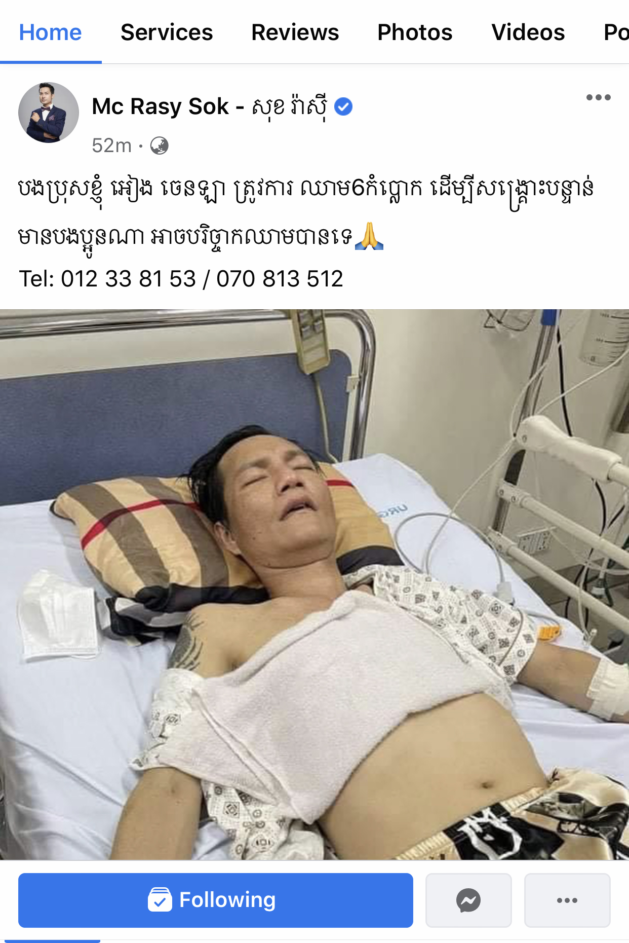 តារាសម្តែង លោក អៀង ចេនឡា បានធ្លាក់ខ្លួនឈឺធ្ងន់ ឥឡូវប្រកាសសុំអ្នកជួយព្រោះត្រូវការឈា..មជាច្រើនផ្លោក