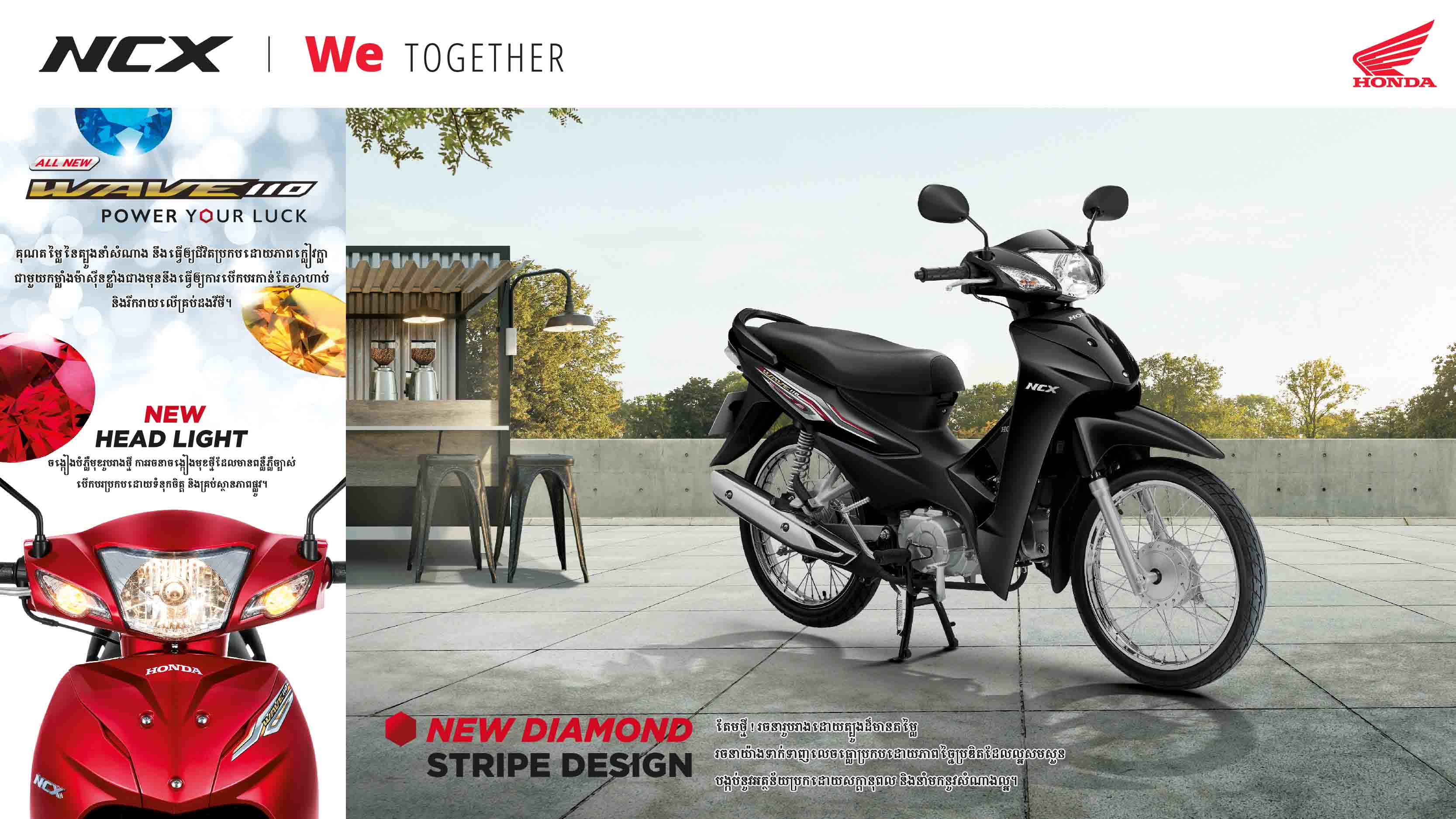 ឆ្នាំនេះ Honda WAVE110 “POWER YOUR LUCK” រចនាថ្មីមកថ្មីទាំងស្រុង ដោយជាមួយនឹងគុណតម្លៃនៃត្បូងនាំសំណាង និងសម្រាប់តែព្រះរាជាណាចក្រកម្ពុជាប៉ុណ្ណោះ នឹងធ្វើឲ្យជីវិតប្រកបដោយភាពក្លៀវក្លាជាមួយកម្លាំងម៉ាស៊ីនខ្លាំងជាងមុននឹងធ្វើឲ្យការបើកបរកាន់តែស្វាហាប់ និងរីករាយលើគ្រប់ដងវីថី។