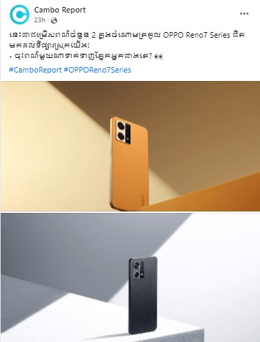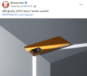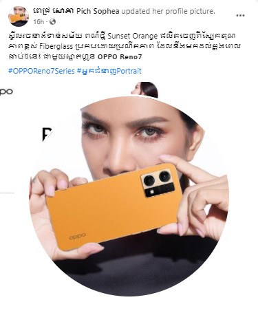 ឆ្ងល់ណាស់! ហេតុអ្វីថ្ងៃនេះក្នុងបណ្តាញសង្គម Facebook មនុស្សម្នានាំផ្អើលឈូឆរហាក់ប្លែកពីសព្វដងម្ល៉េះ? ហើយអ្វីដែលគួរឲ្យកត់សម្គាល់ និងភ្ញាក់ផ្អើលសូម្បីតែតារាប្រុសស្រីល្បីៗរួមមាន ពេជ្រ សោភា, កែវ សុខផេង, Step, ជា វណ្ណារិទ្ធិ, DJ Nana, រ៉េត ស៊ូហ្សាណា ព្រមទាំងតារាៗជាច្រើនរូបផ្សេងទៀតក៏នាំគ្នាចែករំលែករូបភាពជាមួយនឹងស្មាតហ្វូន OPPO Reno7 ជំនាន់ថ្មីនេះដែរ ថែមទាំងមានការបញ្ចេញមតិរៀងៗខ្លួនទៀតផង។ មិនតែប៉ុណ្ណោះ សូម្បីតែអ្នក Review ដ៏ល្បីល្បាញលោក ចន សី និងបណ្តាសារព័ត៌មានល្បីៗ ព្រមទាំងអ្នកនិយមចូលចិត្តវិស័យបច្ចេកវិទ្យាក្នុងស្រុកជាច្រើនកំពុងនាំគ្នាជ្រួលជ្រើមផុសរូបស្មាតហ្វូន OPPO Reno7 ម៉ូដែលថ្មីនេះយ៉ាងព្រោងព្រាត ធ្វើឲ្យអ្នកលេង Facebook អន្ទះអន្ទែងពីការមកដល់របស់កូនពៅត្រកូល Reno Series គ្រប់ៗគ្នា។ ហើយបើតាមដឹងស្មាតហ្វូនស៊េរីថ្មីមួយនេះគឺគេបានផ្តោតសំខាន់លើបច្ចេកវិទ្យា «អ្នកជំនាញ Portrait» ផ្តល់នូវបទពិសោធន៍ថ្មីៗដល់អ្នកប្រើប្រាស់លើមុខងារថតរូបថតវីដេអូ។