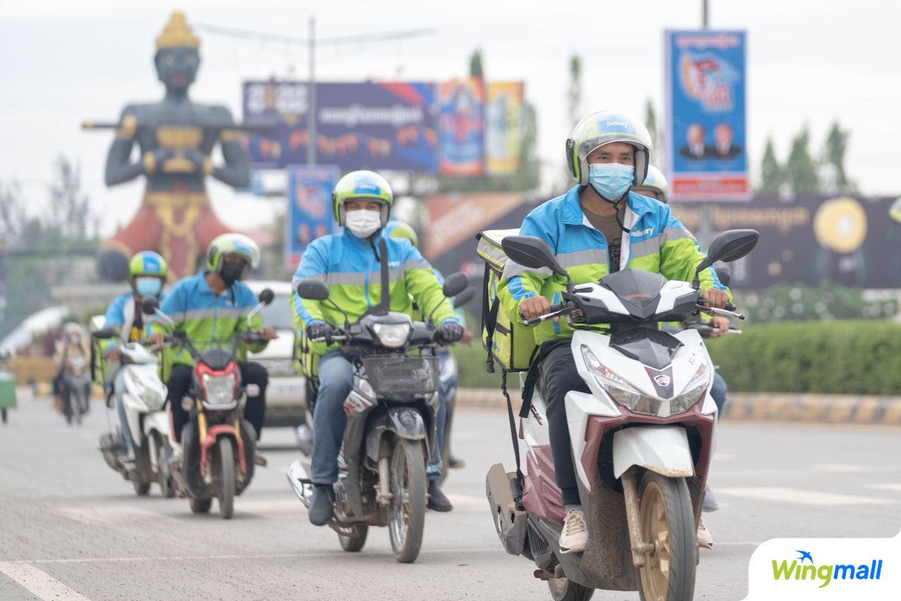 ដើម្បីធ្វើការកុម្ម៉ង់ អតិថិជនគ្រាន់តែចូលទៅក្នុង កម្មវិធីវីងអេប (Wing App) រួចចុចពាក្យ “វីងម៉ល” បន្ទាប់មកពួកគេអាចស្វែងរកទំនិញ និងធ្វើការបញ្ជាទិញពីហាងរាប់ពាន់។ បន្ទាប់ពីធ្វើការកុម្ម៉ុងរួច អតិថិជនអាចទទួលបានអាហារ ឬផលិតផលដែលខ្លួនពេញចិត្ត ហើយវាទាំងនោះនឹងត្រូវដឹកជញ្ជូនដល់មាត់ទ្វារផ្ទះរបស់ពួកគេ។