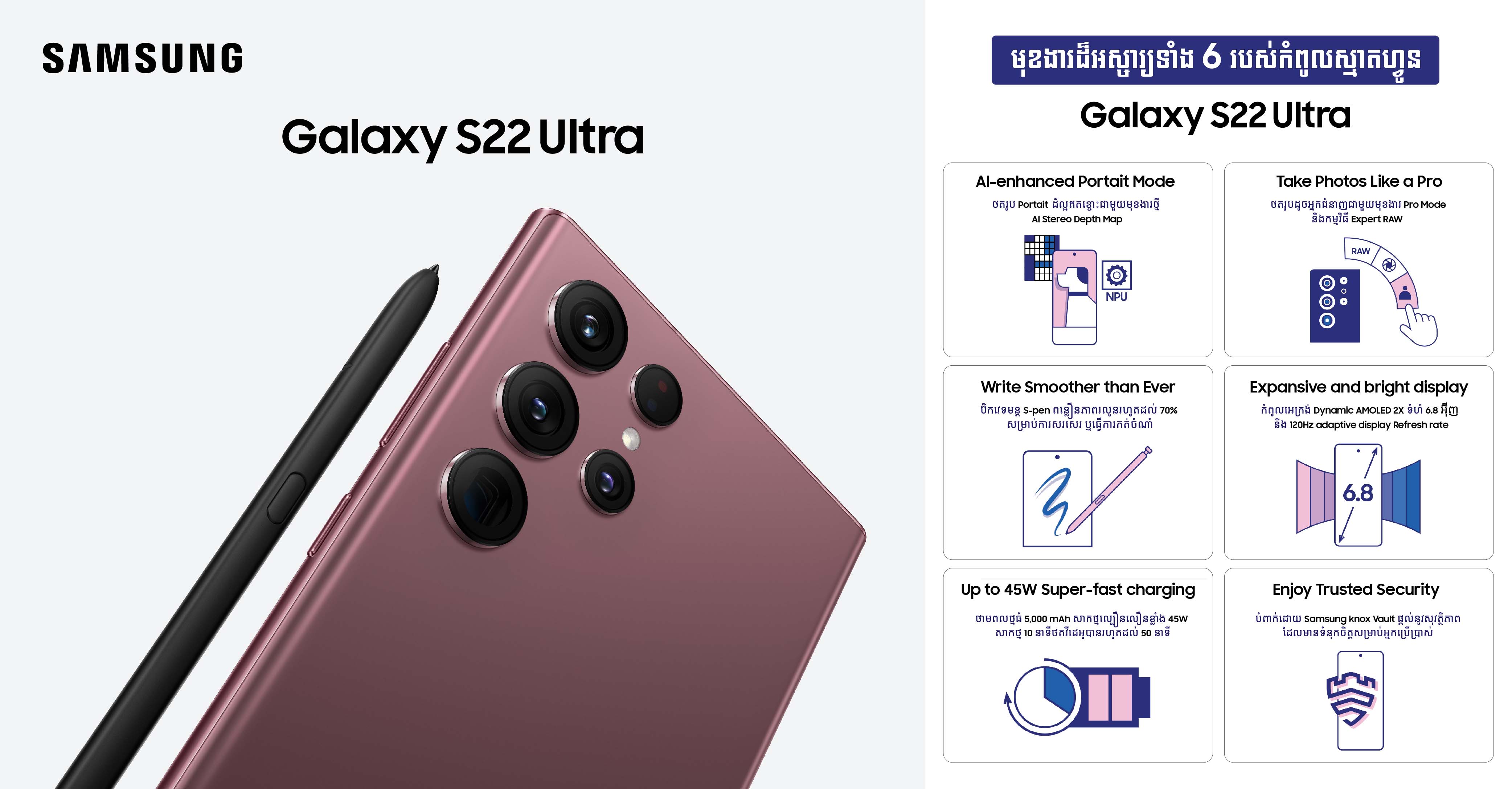 បើដឹងកាន់តែច្បាស់ ស្រឡាញ់កាន់តែខ្លាំងដកចិត្តក៏មិនបាន! អានុភាពនៃកំពូលបច្ចេកវិទ្យារបស់ Note ស៊េរី ដាក់លាយបញ្ចូលជាមួយកំពូលបច្ចេកវិទ្យា Flagship S ស៊េរី បង្កើតបាននូវស្មាតហ្វូនដ៏ល្អឯក S22 ស៊េរី…!