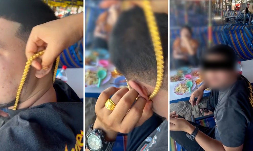 សន្តិវិធី! ស្ត្រីជនជាតិថៃម្នាក់ តាមទាន់ប្តីបណ្ដើរស្រីទៅញ៉ាំបាយ ក៏ចូលទៅដោះយកខ្សែក ចិញ្ចៀនមាសធំៗ និងយកទូរស័ព្ទប្ដី ហើយប្រាប់ថា “មិនបាច់ចូលផ្ទះទេ” រួចដើរចេញទៅបាត់