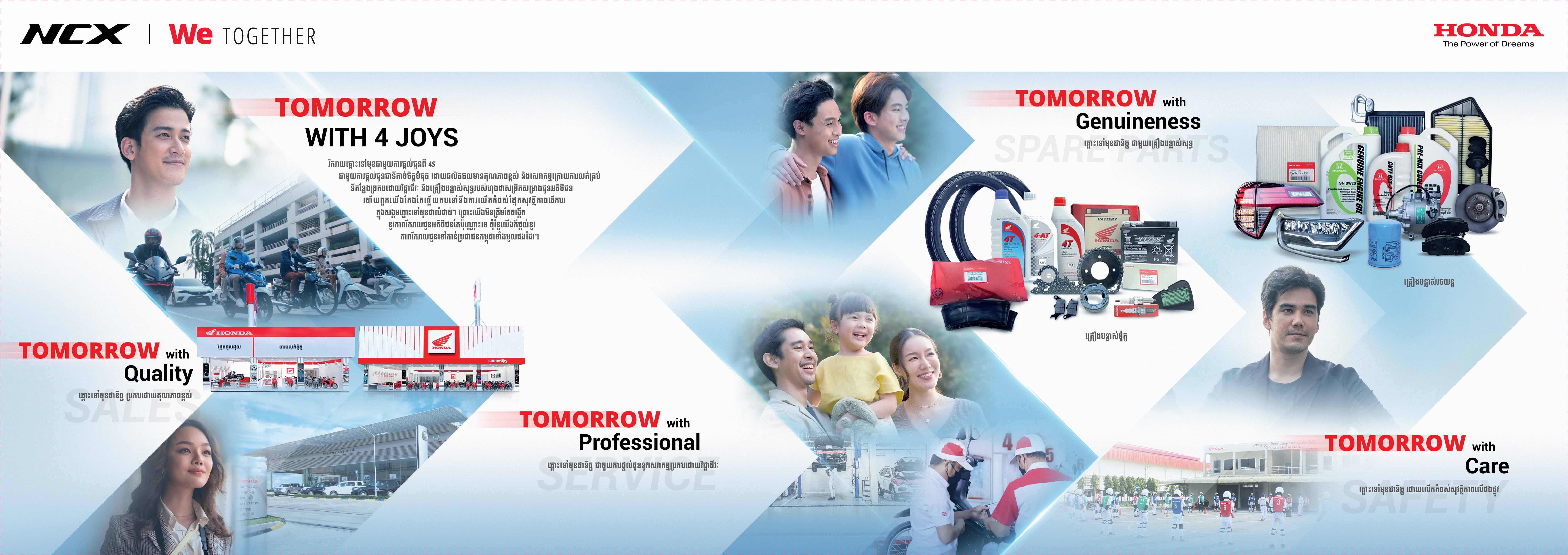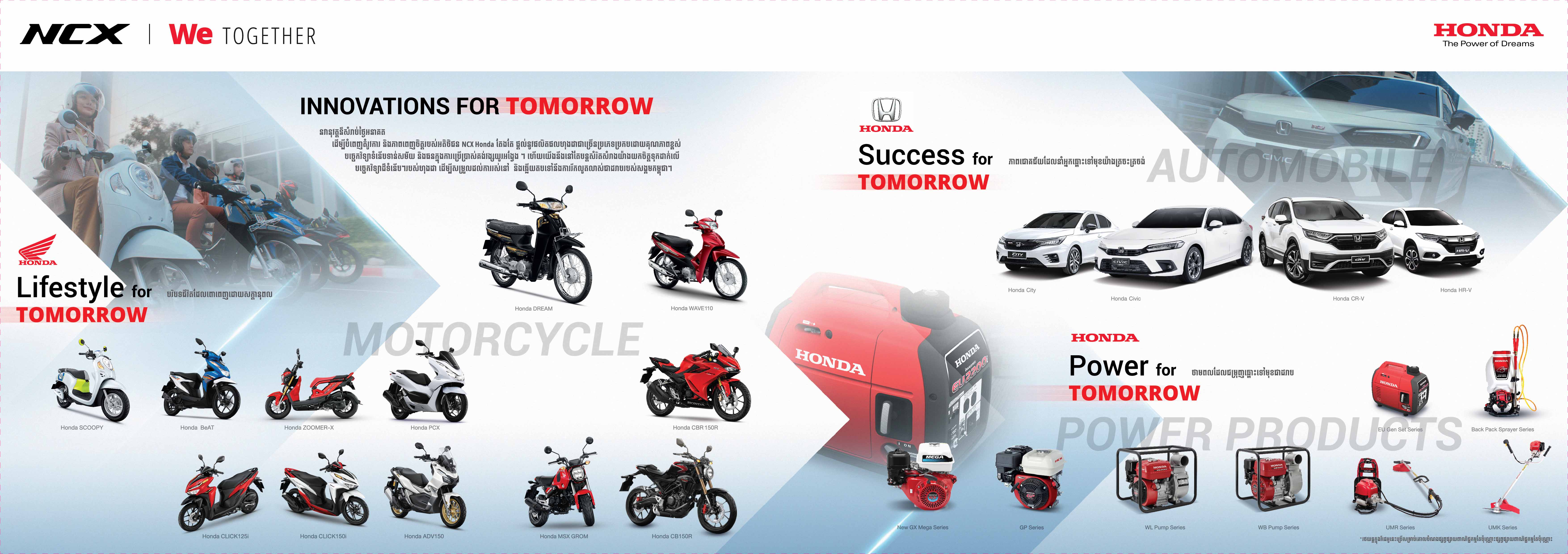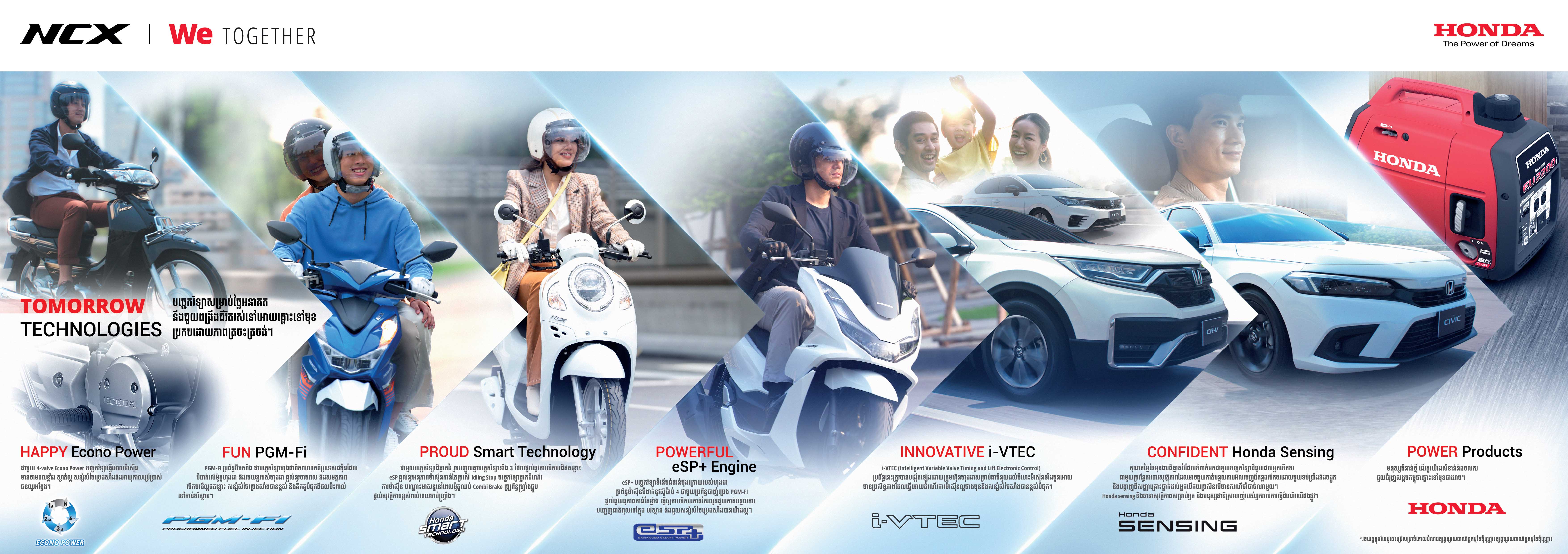 កាលពីឆ្នាំ2021 ក្រុមហ៊ុន NCX បានដាក់ចេញនូវទស្សនវិស័យ “WeTOGETHER” ក្នុងន័យរួមដំណើរជាមួយប្រជាជនកម្ពុជាដើម្បីសម្រេចរាល់ក្ដីស្រមៃ ដោយតែងតែផ្ដល់នូវផលិតផលហុងដា ជាច្រើនប្រភេទប្រកបដោយគុណភាពខ្ពស់ បច្ចេកវិទ្យាទំនើបទាន់សម័យ និងធនក្នុងការប្រើប្រាស់គង់វង្សយូរអង្វែង ។