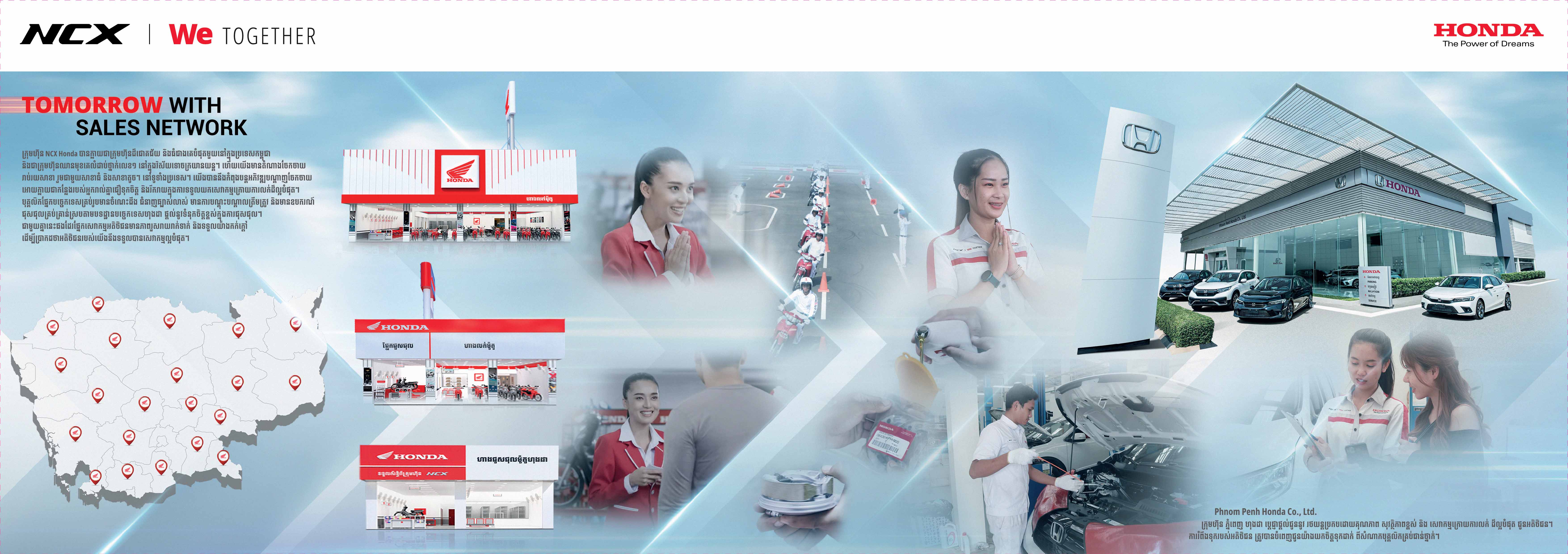 ក្រុមហ៊ុន NCX បានក្លាយជាក្រុមហ៊ុនដ៏ជោគជ័យ និងធំជាងគេបំផុតមួយនៅក្នុងប្រទេសកម្ពុជា និងជាក្រុមហ៊ុនឈានមុខគេលំដាប់ថ្នាក់លេខ១ នៅក្នុងវិស័យទោចក្រយានយន្ត។ ហើយយើងមានតំណាងចែកចាយរាប់រយសាខា រួមជាមួយសាខាធំ និងសាខាតូចៗ នៅទូទាំងប្រទេស។ យើងបាននឹងកំពុងបន្តអភិវឌ្ឍបណ្តាញចែកចាយអោយក្លាយជាកន្លែងរបស់អ្នករាល់គ្នាជឿទុកចិត្ត និងរីករាយក្នុងការទទួលយកសេវាកម្មក្រោយការលក់ដ៏ល្អបំផុត។ បុគ្គលិកផ្នែកបច្ចេកទេសគ្រប់រូបមានចំណេះដឹង ជំនាញឆ្បាស់លាស់ មានការបណ្តុះបណ្តាលត្រឹមត្រូវ និងមានឧបករណ៍ជុសជុលគ្រប់គ្រាន់ស្របតាមបទដ្ឋានបច្ចេកទេសហុងដា ផ្តល់នូវទំនុកចិត្តខ្ពស់ក្នុងការជុសជុល។ ជាមួយគ្នានេះផងដែរផ្នែកសេវាកម្មអតិថិជនមានភាពរួសរាយរាក់ទាក់ និងទទួលយ៉ាងកក់ក្តៅ ដើម្បីប្រាកដថាអតិថិជនរបស់យើងនឹងទទួលបានសេវាកម្មល្អបំផុត។