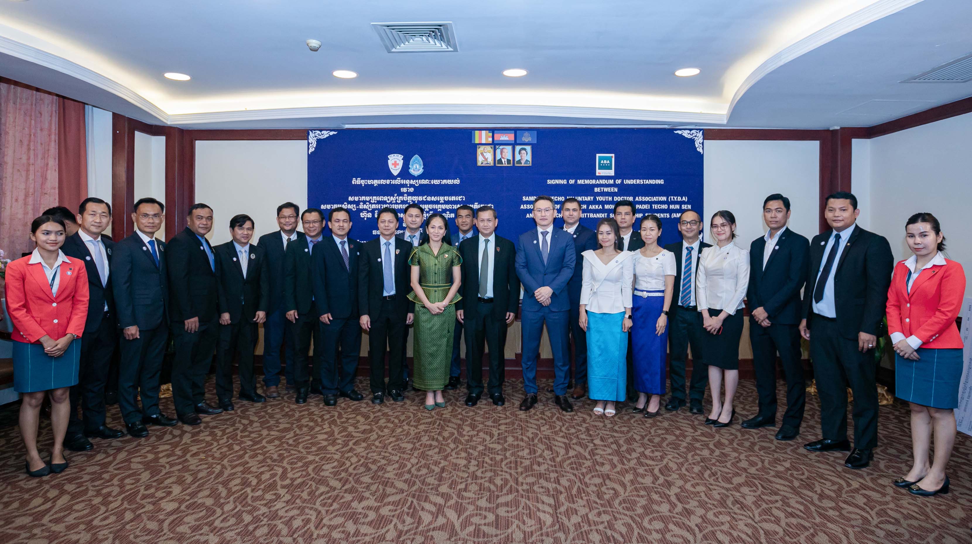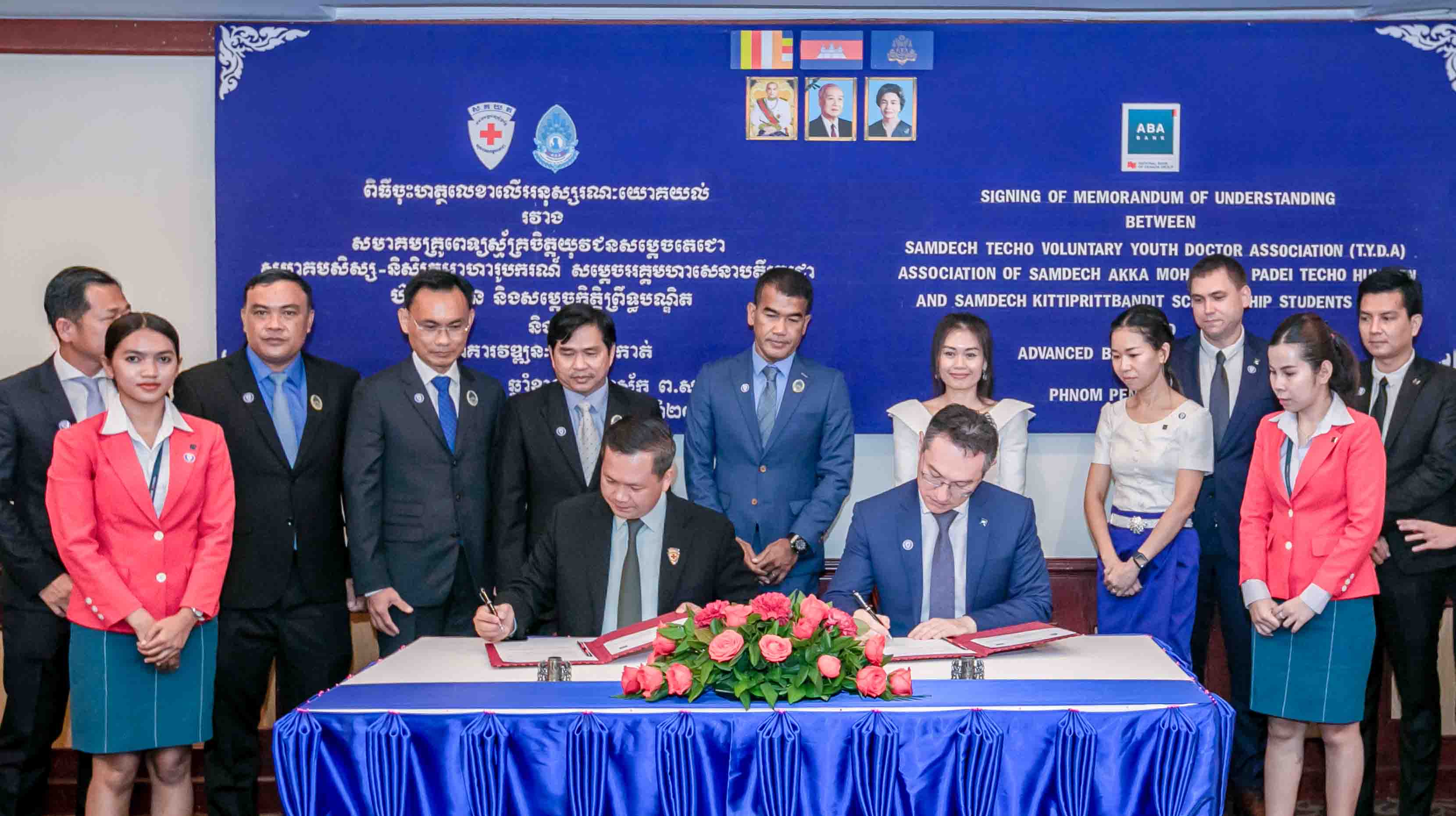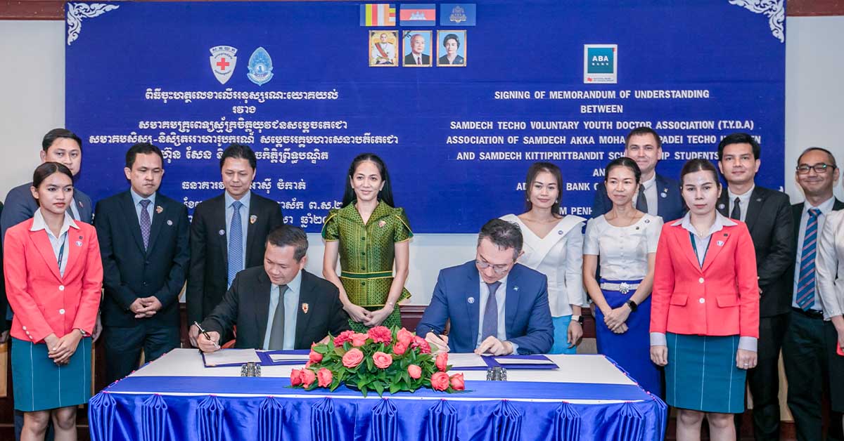 ភ្នំពេញ ថ្ងៃទី២០ ខែមេសា ឆ្នាំ២០២២ – ធនាគារ ABA ដែលជាធនាគារពាណិជ្ជឈានមុខគេនៅកម្ពុជា បានចុះអនុស្សរណៈយោគយល់គ្នា (MoU) ជាមួយសមាគមគ្រូពេទ្យស្ម័គ្រចិត្តយុវជនសម្តេចតេជោ (TYDA) និងសមាគមសិស្ស-និស្សិតអាហារូបករណ៍ សម្តេចអគ្គមហាសេនាបតីតេជោ ហ៊ុន សែន និងសម្តេចកិត្តិព្រឹទ្ធបណ្ឌិត(AMT) ដើម្បីផ្តល់ការគាំទ្រផ្នែកហិរញ្ញវត្ថុដល់សមាគម។