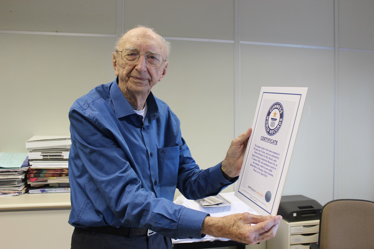 យោងតាមការចេញផ្សាយរបស់ Guinness World Records កាលពីសប្ដាហ៍មុន លោក Walter Orthmann ដែលមានអាយុ ១០០ឆ្នាំ បានធ្វើការនៅក្រុមហ៊ុនមួយអស់រយៈពេល ៨៤ឆ្នាំ និង ៩ថ្ងៃ គិតត្រឹមថ្ងៃទី០៦ ខែមករា។ បុរសវ័យចំណាស់ជនជាតិប្រេស៊ីលរូបនេះបានចាប់ផ្តើមធ្វើការជាជំនួយការផ្នែកដឹកជញ្ជូននៅក្រុមហ៊ុនវាយនភណ្ឌ Industrias Renaux S.A. ដែលឥឡូវត្រូវបានគេស្គាល់ថា ReneauxView ក្នុងខែមករា ឆ្នាំ១៩៣៨។ កាលនោះគាត់មានអាយុ ១៥ឆ្នាំប៉ុណ្ណោះ តែត្រូវចាំបាច់រកការងារធ្វើ ដើម្បីជួយផ្គត់ផ្គង់គ្រួសារ ដែលប្រឈមនឹងបញ្ហាហិរញ្ញវត្ថុ។