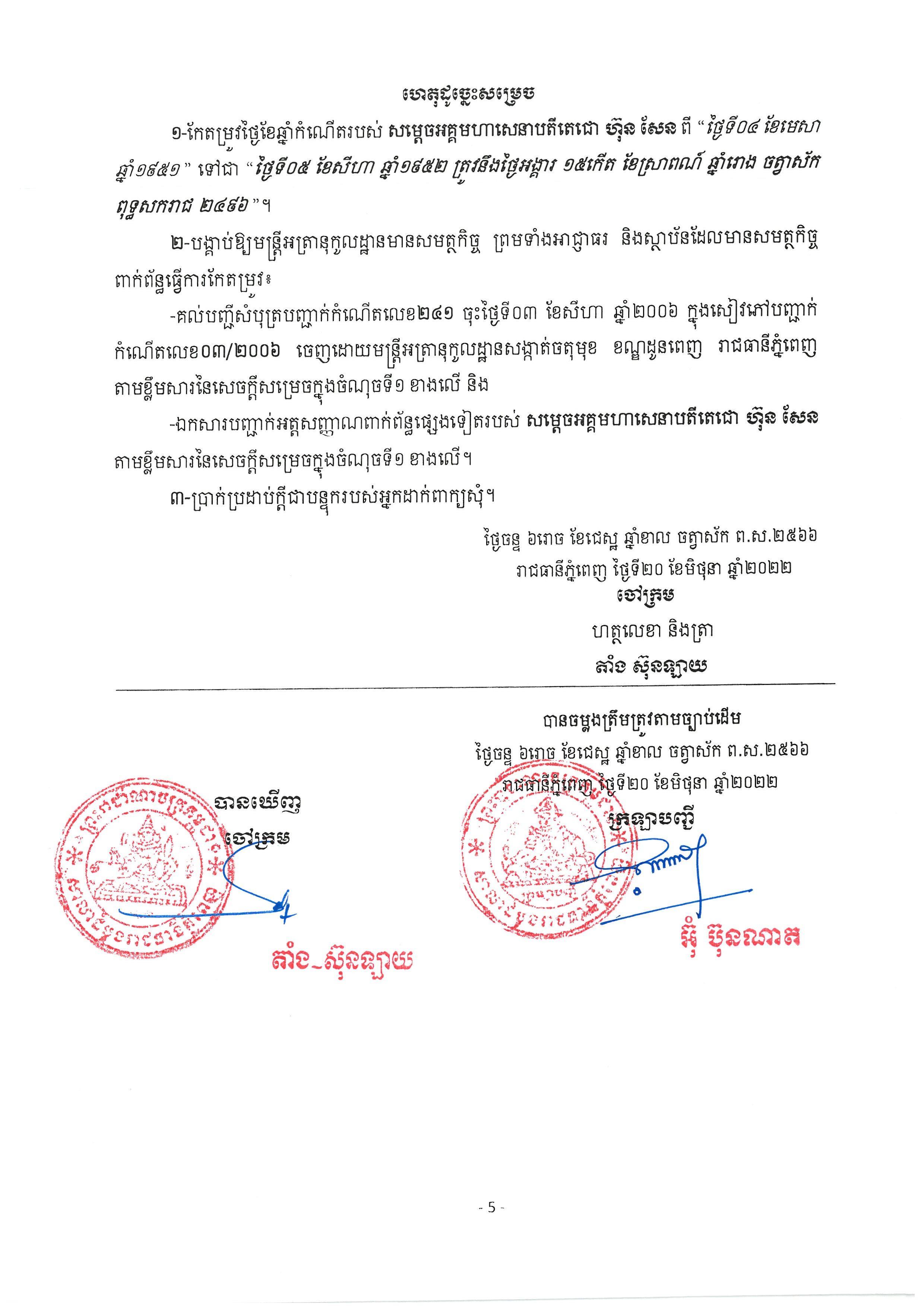 សាលាដំបូងរាជធានីភ្នំពេញ ចេញដីកាសម្រេចកែតម្រូវថ្ងៃខែឆ្នាំកំណើត សម្ដេចតេជោ ហ៊ុន សែន ទៅថ្ងៃទី០៥ ខែសីហា ឆ្នាំ១៩៥២ ជាផ្លូវការ