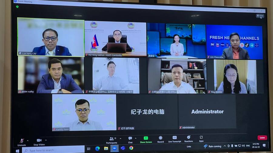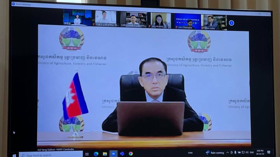 ថ្លែងក្នុងអំឡុងកិច្ចសន្ទនាអនឡាញស្ដីពីកសិកម្មកម្ពុជា-ចិន ក្រោមក្របខណ្ឌ «ខ្សែក្រវាត់ និងផ្លូវ» នារសៀលថ្ងៃទី២០ ខែកក្កដា ឆ្នាំ២០២២ ឯកឧត្តម វេង សាខុន រដ្ឋមន្ត្រីក្រសួងកសិកម្ម រុក្ខាប្រមាញ់និងនេសាទនៃប្រទេសកម្ពុជាមានប្រសាសន៍ថា ការនាំចេញ ផលិតផលកសិកម្មកម្ពុជា ទៅកាន់ទីផ្សារប្រទេសចិន ក្នុងរយៈពេល៣ឆ្នាំ ៦ខែ គិតចាប់ពីឆ្នាំ២០១៩ រហូតដល់ ៦ខែដើមឆ្នាំ២០២២ កន្លងមកនេះ សម្រេចបានទំហំជាង ២.៤ លានតោន ដែលក្នុងនោះ មានផ្លែចេកស្រស់ អង្ករ ចំណិតដំឡូង មីក្រៀម ម្សៅដំឡូងមី ដំណាប់ស្វាយ ជ័រកៅស៊ូ កាកសំណល់ដំឡូងមី ផ្លែស្វាយស្រស់ គ្រាប់ស្វាយចន្ទីកែច្នៃ ម្សៅកាកាវ និងផលិតផលកសិកម្ម ចំនួន ២៤មុខ ផ្សេងទៀត ដែលមានតម្លៃ ១៩៤២លានដុល្លារអាមេរិក។