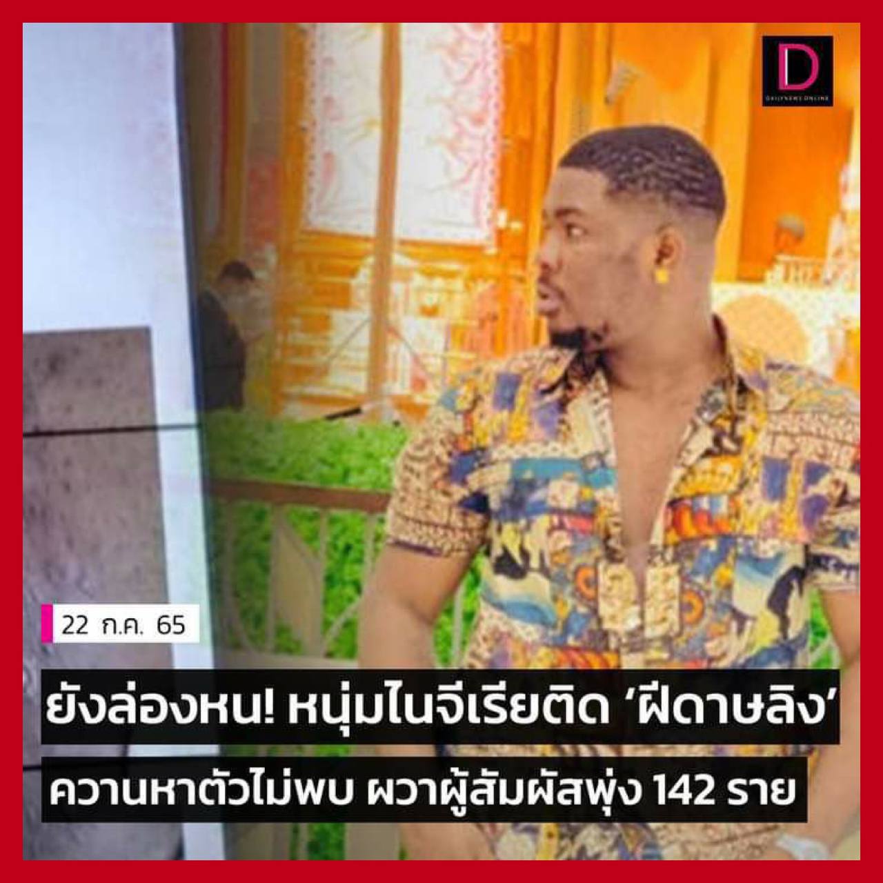 អាជ្ញាធរសុខាភិបាលកោះភូកេត បានឲ្យដឹងថា ក្រោយទទួលដំណឹងនៃលទ្ធផលធ្វើតេស្ត អ្នកជំងឺបានបដិសេធទទួលការព្យាបាល ហើយបិទទូរស័ព្ទរបស់ខ្លួន លែងឲ្យមន្ទីរពេទ្យទាក់ទងបាន។ បុរសជនជាតិនីហ្សេរីយ៉ារូបនោះ បានចូលមកដល់ប្រទេសថៃ តាំងតែពី ថ្ងៃទី២១ ខែតុលា ឆ្នាំ២០២១ ហើយបានស្នាក់នៅខុនដូមួយកន្លែង ក្នុងក្រុងផាតុង (Patong) នៃកោះភូកេត ចាប់ពីខែវិច្ឆិកា ឆ្នាំមុន រហូតមក៕ ផ្តល់សិទ្ធិដោយ៖ freshnews