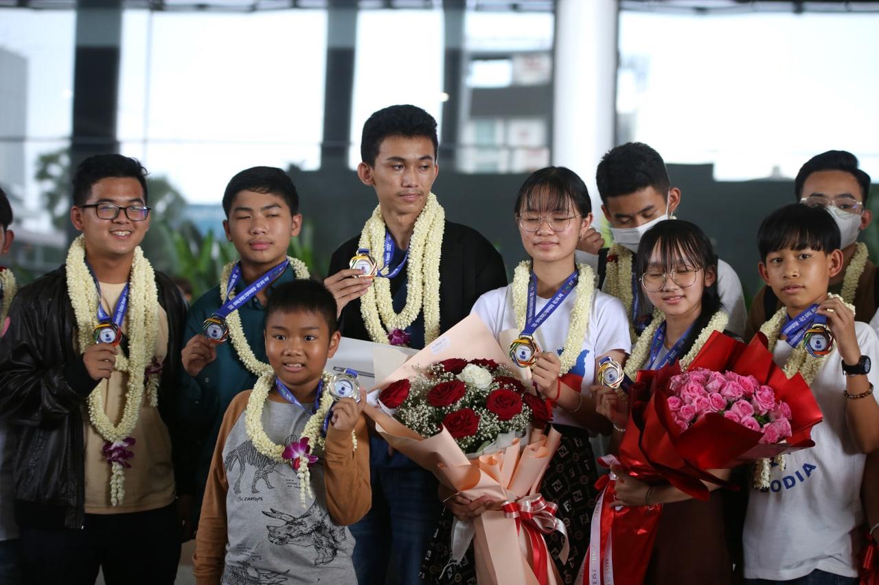 កុលបុត្រខ្មែរ ៣០រូប ដែលដណ្តើមបានមេដាយមាស ប្រាក់ និងសំរឹទ្ធ ពីការប្រកួតគណិតវិទ្យានៅអាមេរិក ត្រឡប់ដល់ប្រទេសវិញ ជាមួយមោទនភាពក្រៃលែង