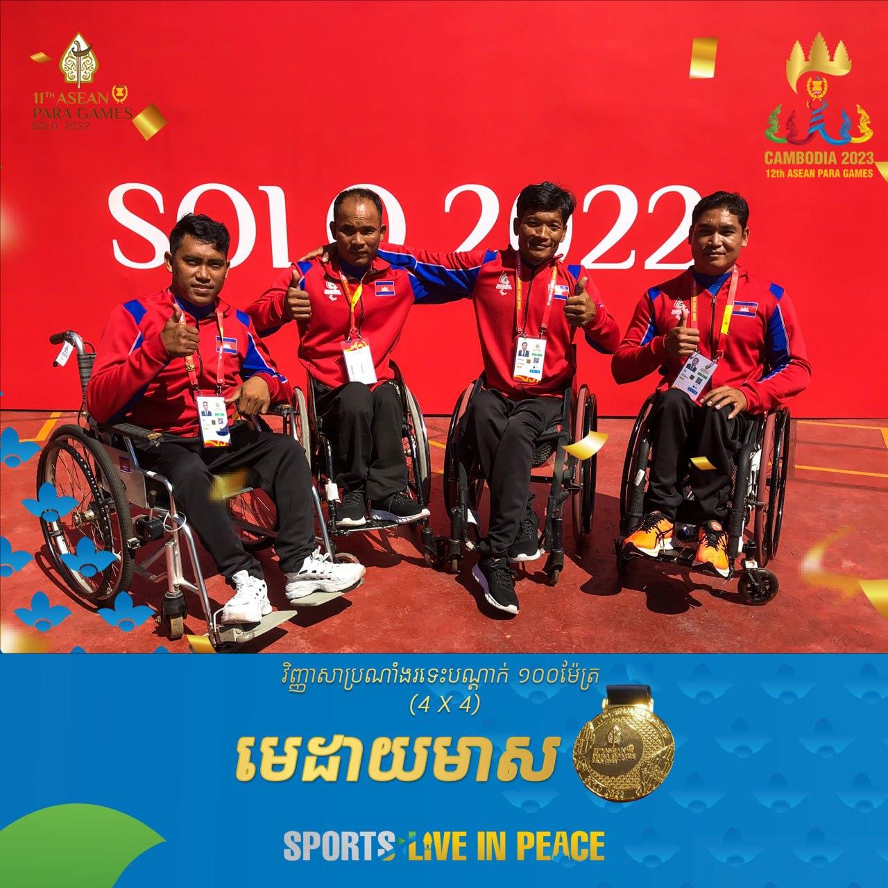 អបអសាទរ! កម្ពុជាឈ្នះមេដាយមាសទី៧ នៃព្រឹត្តិការណ៍អាស៊ានប៉ារ៉ាហ្គេម លើវិញ្ញាសាប្រណាំងរទេះ ១០០ម៉ែត្រ ៤ x ៤