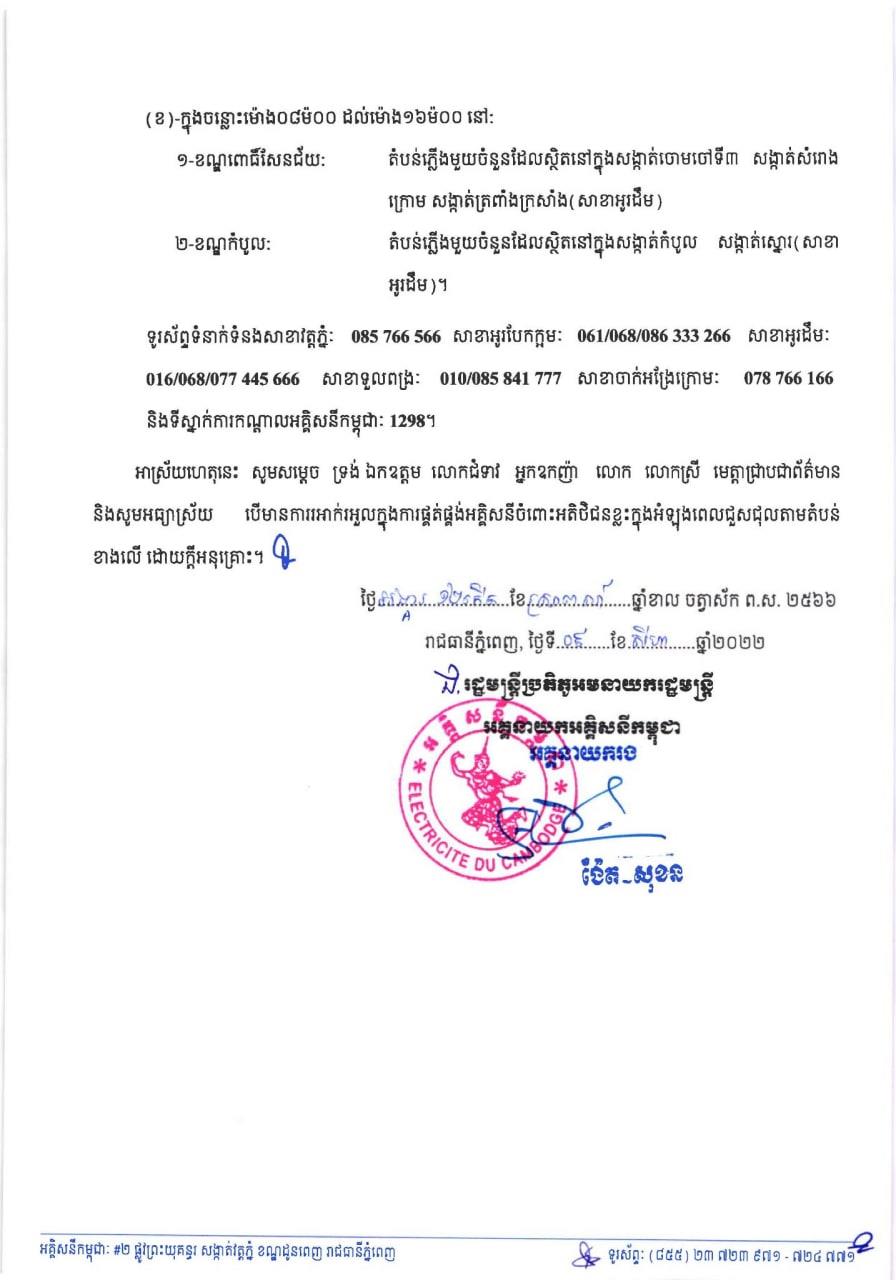 សូមអានសេចក្តីជូនដំណឹង របស់អគ្គិសនីកម្ពុជា ដូចខាងក្រោម៖