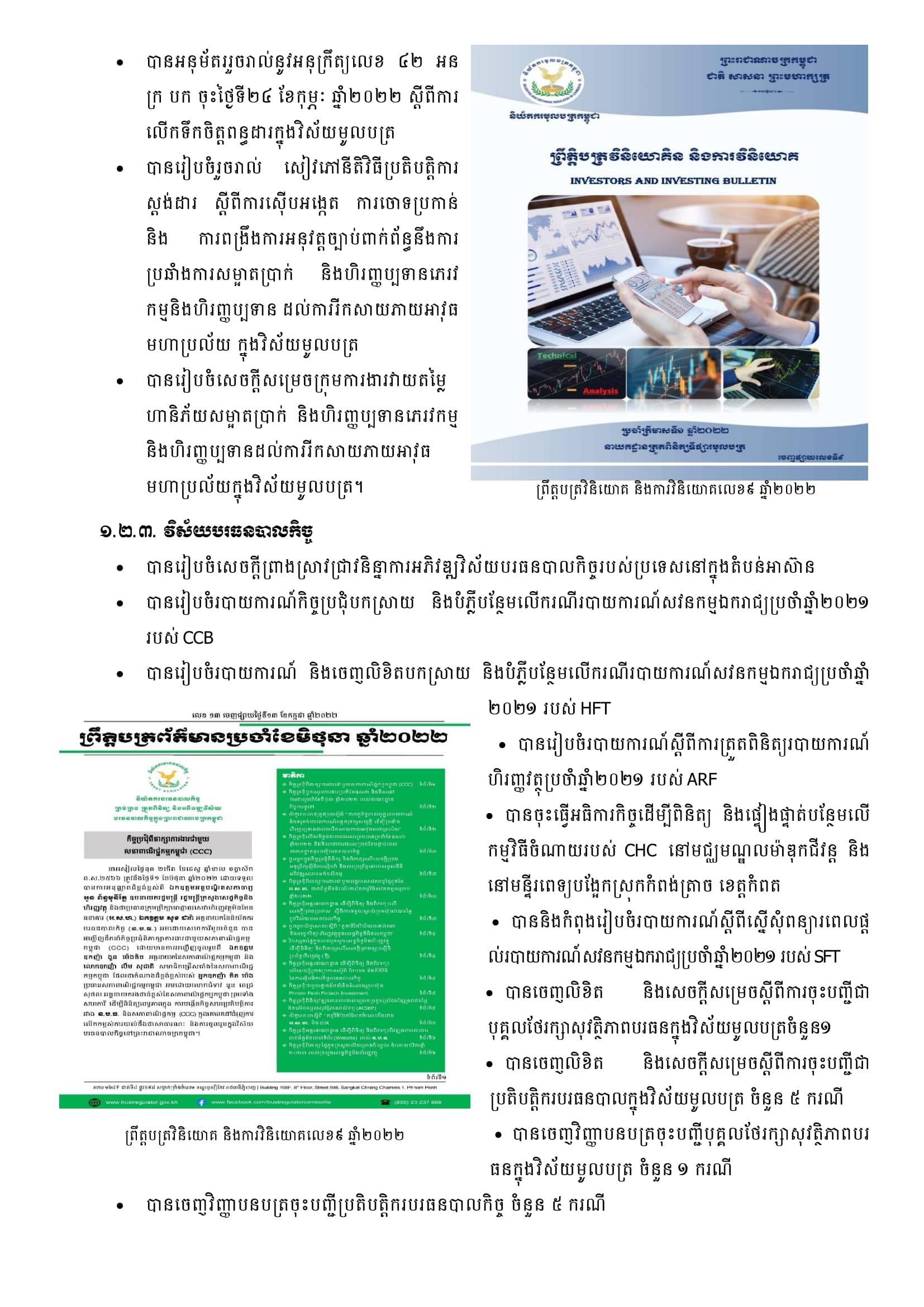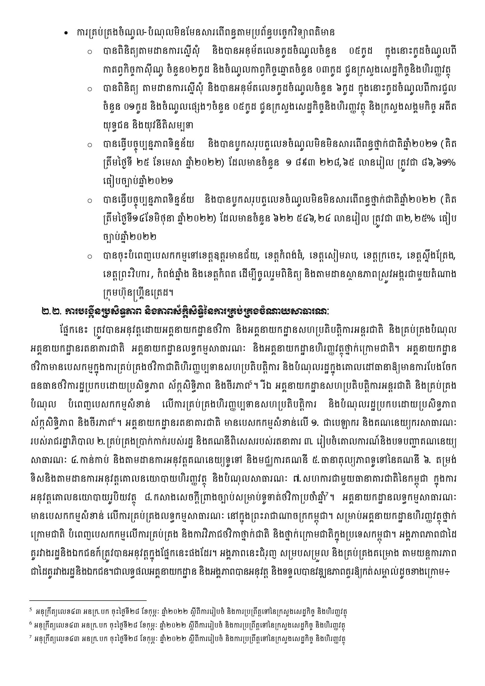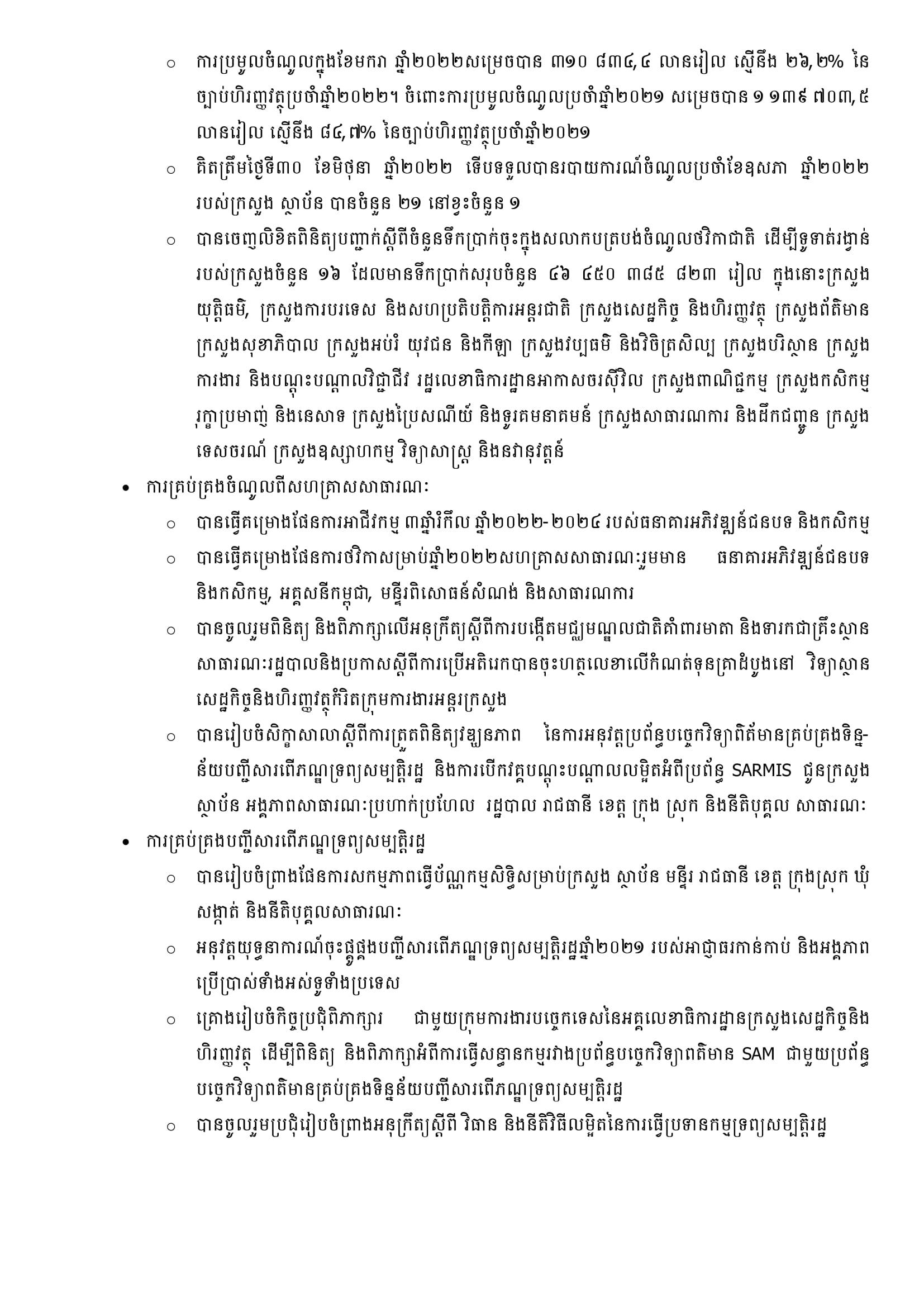 (ភ្នំពេញ)៖ នៅឆមាសទី១ ឆ្នាំ២០២២ អគ្គនាយកដ្ឋានគយ និងរដ្ឋាករកម្ពុជា បាត់បង់ចំណូលពន្ធ និងអាករនាំចូលចំនួន៥២៦.៧៣លានដុល្លារ ដោយសារការផលិតស្រាបៀរ, ស៊ីម៉ងត៌, ភេសជ្ជៈ, បារី និងយានយន្ដក្នុងស្រុកជំនួសការនាំចូល។ នេះបើយោងតាមរបាយការណ៍ របស់ក្រសួងសេដ្ឋកិច្ច និងហិរញ្ញវត្ថុស្ដីពី «សកម្មភាពការងារប្រចាំឆមាសទី១ ឆ្នាំ២០២២ របស់ក្រសួងសេដ្ឋកិច្ច និងហិរញ្ញវត្ថុ»។