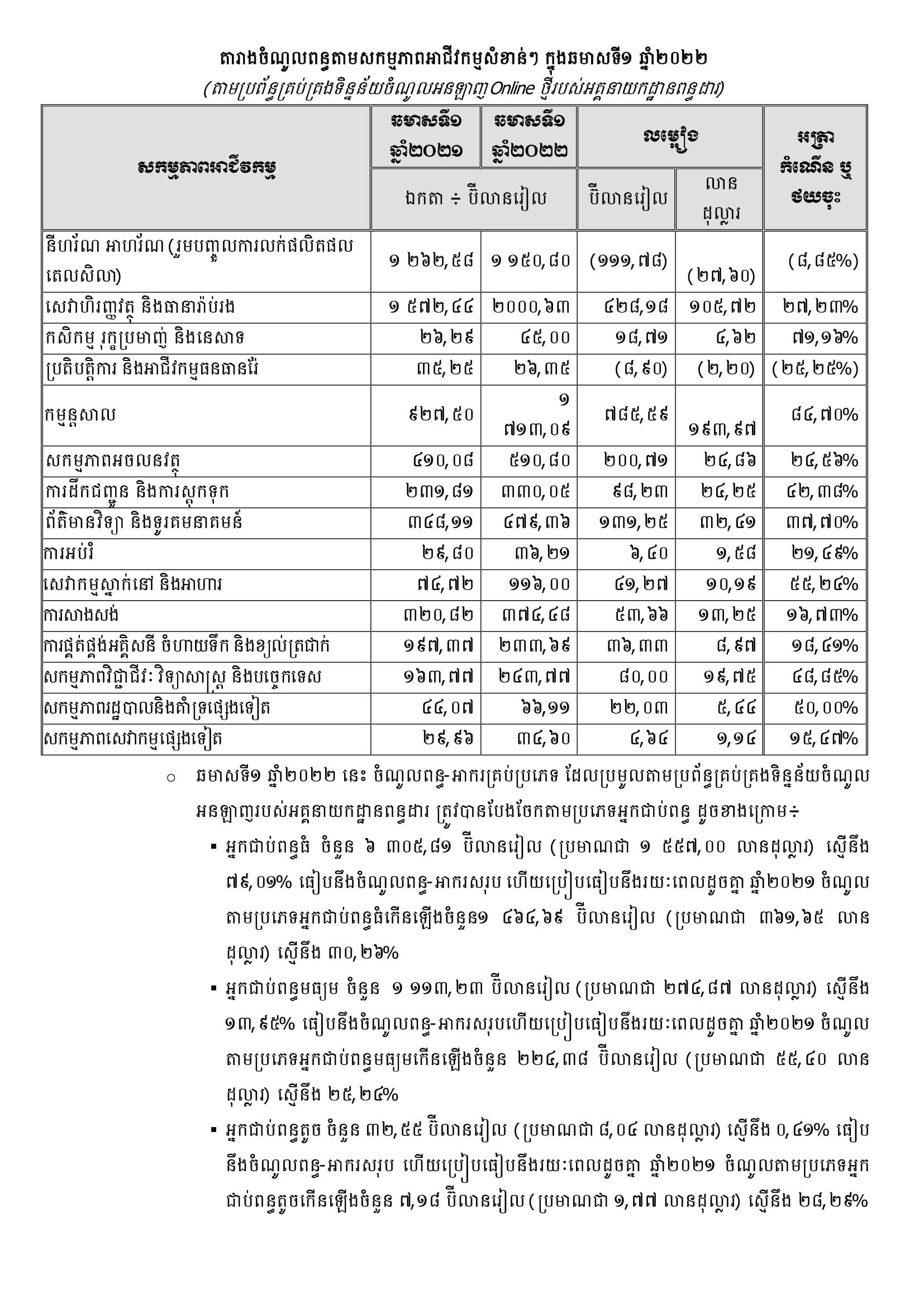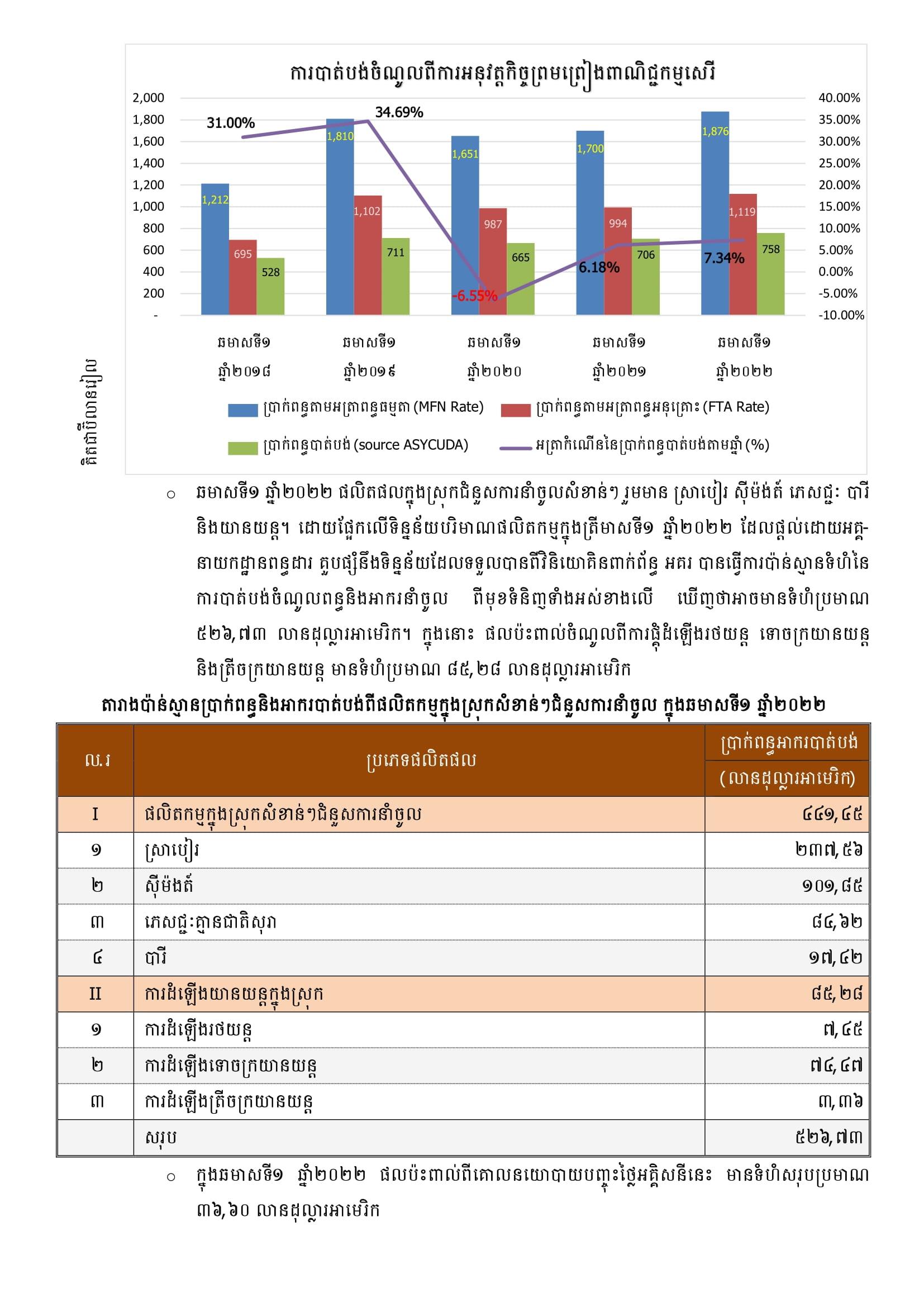 ក្នុងនោះខាតបង់ពីការនាំចូលផលិតផលស្រាបៀរ ស៊ីម៉ងត៌ ភេសជ្ជៈ បារី និងយានយន្ដមាន៖