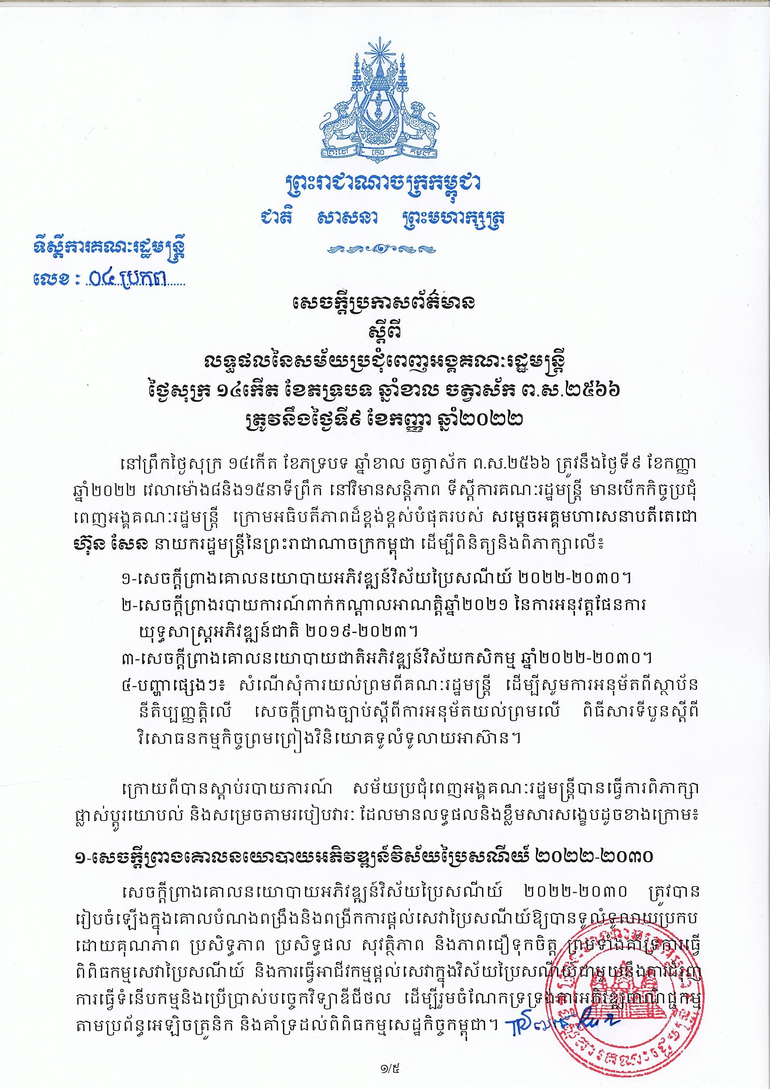 (ភ្នំពេញ)៖ រាជរដ្ឋាភិបាលកម្ពុជា បានសម្រេចផ្អាកការប្រារព្ធព្រះរាជពិធីបុណ្យអុំទូក បណ្តែតប្រទីប និងសំពះព្រះខែ អកអំបុក ឆ្នាំ២០២២នេះ សម្រាប់ថ្នាក់ជាតិ។ ការសម្រេចនេះ បានធ្វើឡើងក្នុងកិច្ចប្រជុំគណៈរដ្ឋមន្ត្រីក្រោមអធិបតីភាពសម្តេចតេជោ ហ៊ុន សែន នាយករដ្ឋមន្ត្រីកម្ពុជា នាព្រឹកថ្ងៃទី០៩ ខែកញ្ញា ឆ្នាំ២០២២នេះ។
