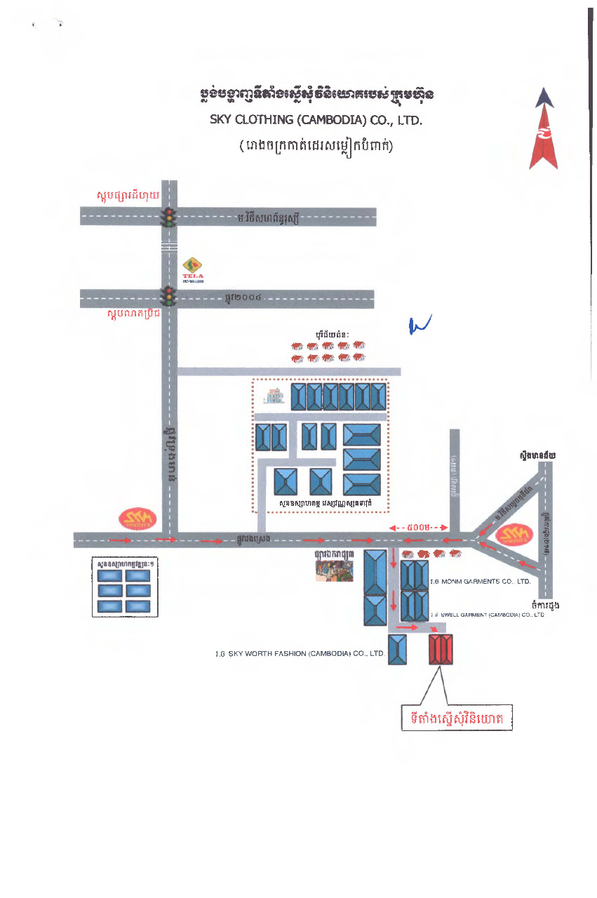 ៣-SKY CLOTHING (CAMBODIA) CO., LTD គម្រោងបង្កើតរោងចក្រកាត់ដេរសម្លៀកបំពាក់ដែលមានទីតាំងវិនិយោគស្ថិតនៅភូមិដំណាក់ធំ២ សង្កាត់ស្ទឹងមានជ័យទី៣ ខណ្ឌមានជ័យ រាជធានីភ្នំពេញ ក្នុងទុនវិនិយោគប្រមាណ ៥,៤លានដុល្លារអាមេរិក និងអាចបង្កើតការងារបានចំនួន ១.៣៤៧កន្លែង។
