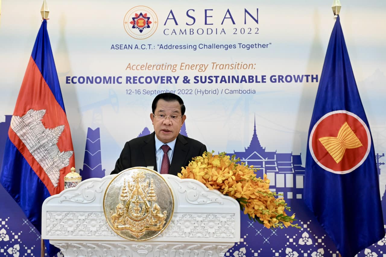 (ភ្នំពេញ)៖ នៅព្រឹកថ្ងៃព្រហស្បតិ៍ ទី១៥ ខែកញ្ញា ឆ្នាំ២០២២នេះ សម្តេចតេជោ ហ៊ុន សែន នាយករដ្ឋមន្ត្រីកម្ពុជា និងជាប្រធានអាស៊ាន បានអញ្ជើញថ្លែងសុន្ទរកថាគន្លឹះតាមប្រព័ន្ធវីដេអូ បើកកិច្ចប្រជុំរដ្ឋមន្ត្រីថាមពលអាស៊ានលើកទី៤០ និងកិច្ចប្រជុំពាក់ព័ន្ធ។ ក្នុងសុន្ទរកថាគន្លឹះនេះ សម្តេចតេជោ បានដាក់ចេញនូវគំនិតផ្តួចផ្តើមមួយចំនួន ដើម្បីដោះស្រាយបញ្ហាប្រឈមផ្នែកថាមពលក្នុងតំបន់អាស៊ាន។ ក្នុងគំនិតផ្តួចផ្តើមទាំងនោះ សម្តេចតេជោ បានស្នើឱ្យប្រទេសសមាជិកអាស៊ាន ជំរុញតភ្ជាប់ខ្សែបញ្ជូនថាមពលអាស៊ាន និងបំពង់ឧស្ម័ន ដើម្បីតភ្ជាប់ថាមពលអគ្គិសនីក្នុងតំបន់។