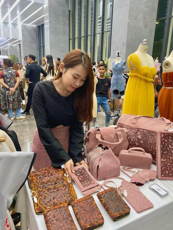 ស្ថាបនិកស្រ្តីខ្មែរច្នៃកាបូបរំលេចរូបភាពល្ខោនស្បែកធំយ៉ាងស្រស់ស្អាតទាន់សម័យ
