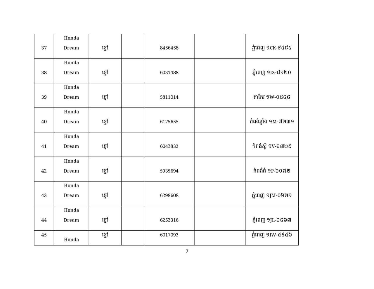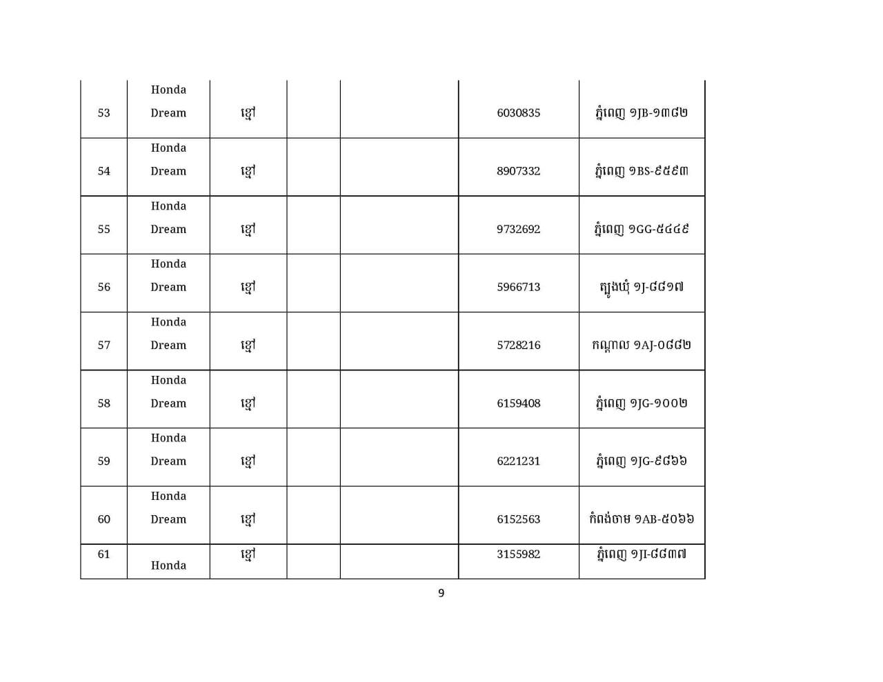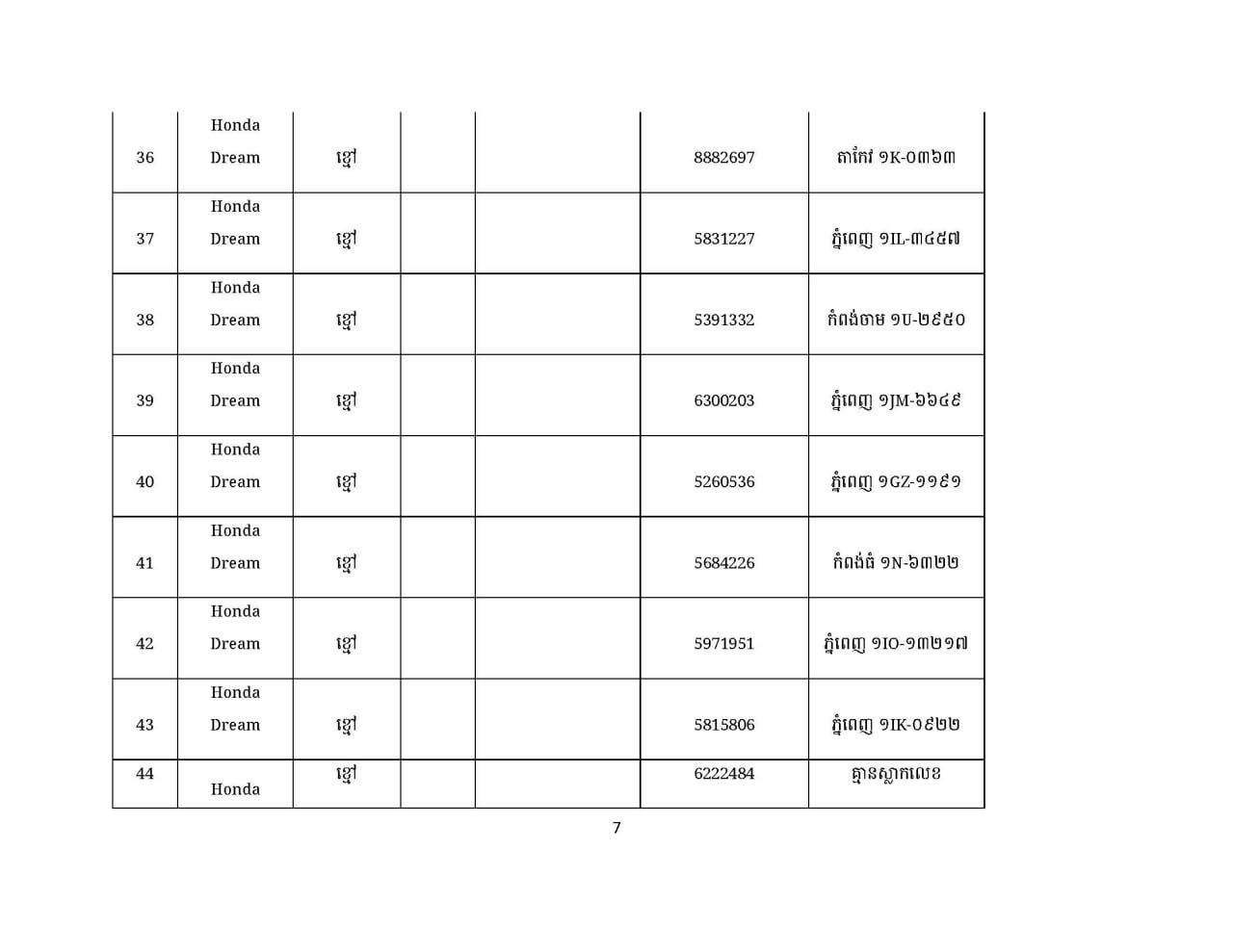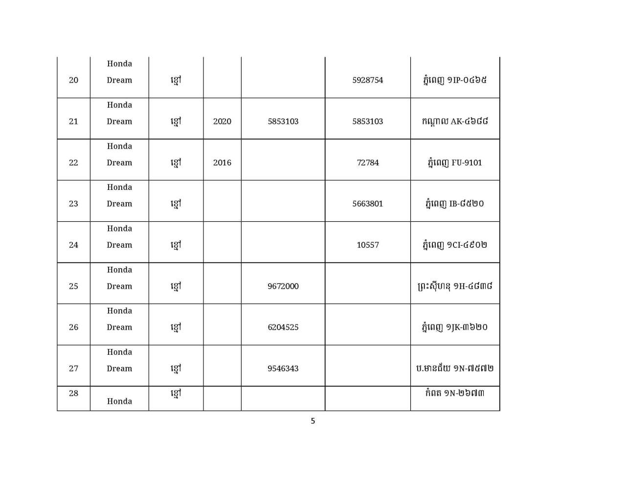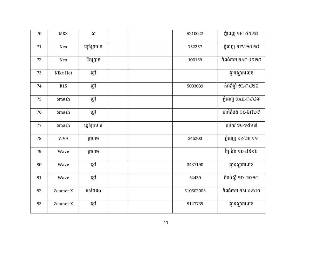 រាជធានីភ្នំពេញ៖ យោងតាមការចុះផ្សាយរបស់ រដ្ឋបាលខណ្ឌជ្រោយចង្វារ នៅថ្ងៃទី២១ ខែកញ្ញា ឆ្នាំ២០២២ បានឱ្យដឹងថា ដើម្បីផ្តល់ភាពងាយស្រួលដល់ក្រុមការងារពិនិត្យផ្ទៀងផ្ទាត់ឯកសារ និងជួយសម្រួលដល់បងប្អូនប្រជាពលរដ្ឋដែលស្វែងរកម៉ូតូ ដូចនេះសូមបងប្អូនពិនិត្យមើលបញ្ជីខាងក្រោមជាមុនសិន។