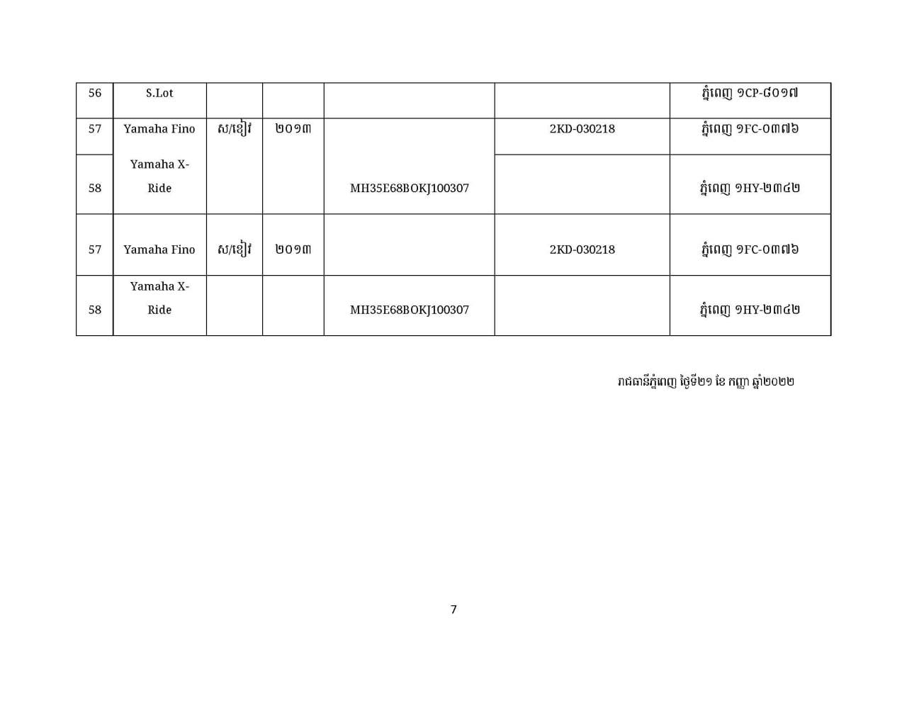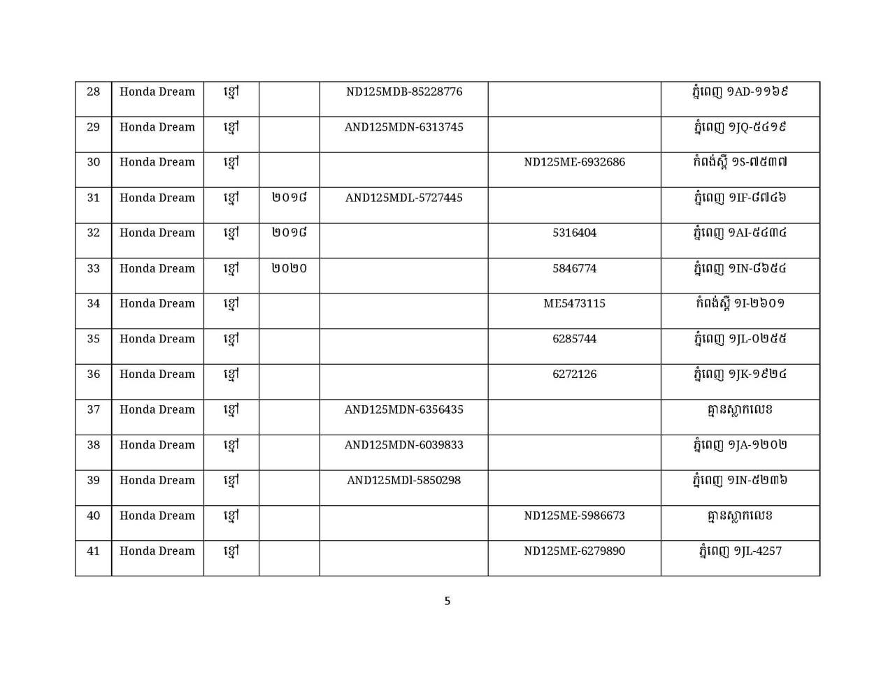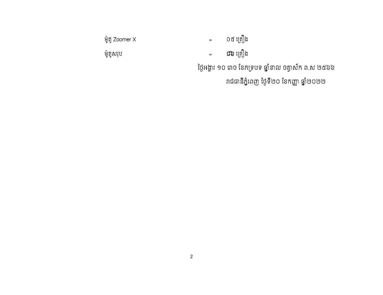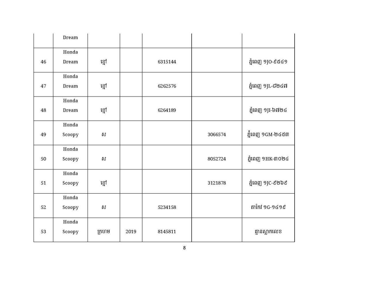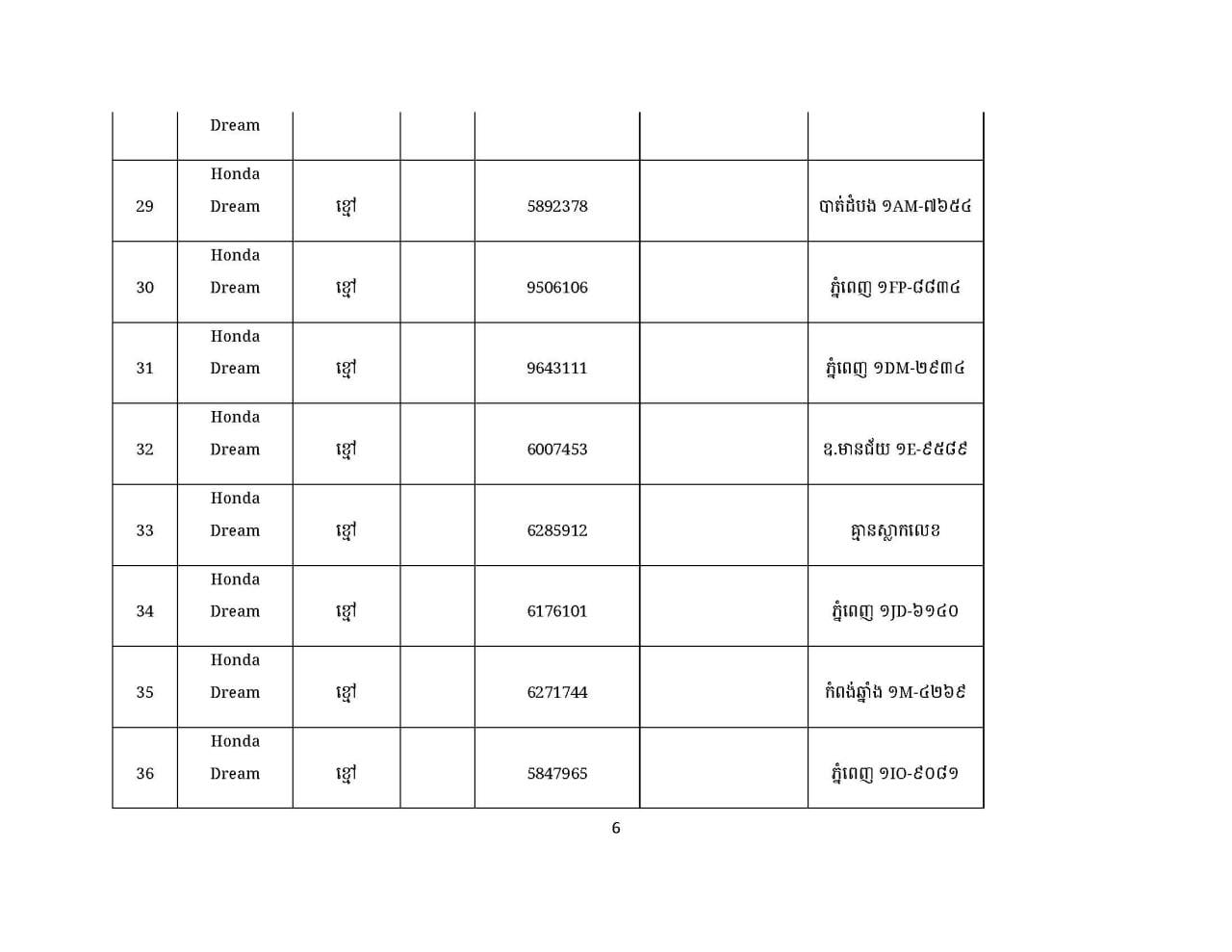 រាជធានីភ្នំពេញ៖ យោងតាមការចុះផ្សាយរបស់ រដ្ឋបាលខណ្ឌជ្រោយចង្វារ នៅថ្ងៃទី២១ ខែកញ្ញា ឆ្នាំ២០២២ បានឱ្យដឹងថា ដើម្បីផ្តល់ភាពងាយស្រួលដល់ក្រុមការងារពិនិត្យផ្ទៀងផ្ទាត់ឯកសារ និងជួយសម្រួលដល់បងប្អូនប្រជាពលរដ្ឋដែលស្វែងរកម៉ូតូ ដូចនេះសូមបងប្អូនពិនិត្យមើលបញ្ជីខាងក្រោមជាមុនសិន។