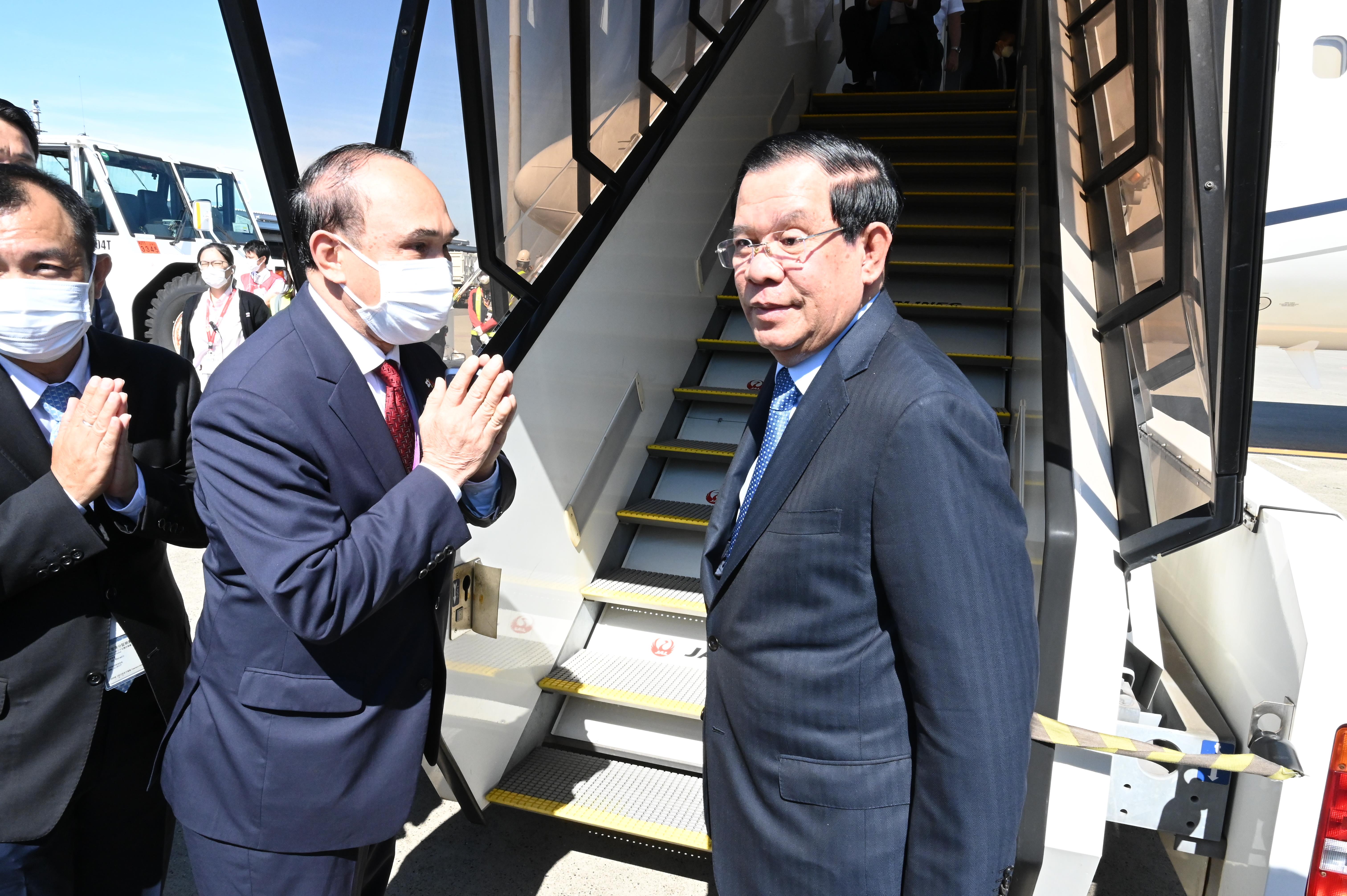 (តូក្យូ-ជប៉ុន)៖ សម្តេចតេជោ ហ៊ុន សែន នាយករដ្ឋមន្ត្រីនៃកម្ពុជា នៅព្រឹកថ្ងៃទី២៨ ខែកញ្ញា ឆ្នាំ ២០២២នេះ បានដឹកនាំគណៈប្រតិភូជាន់ខ្ពស់រាជរដ្ឋាភិបាលកម្ពុជា អញ្ជើញចាកចេញពីទីក្រុងតូក្យូ ប្រទេសជប៉ុន ក្នុងដំណើរនិវត្តន៍មកកាន់ទឹកដីនៃព្រះរាជាណាចក្រកម្ពុជាវិញហើយ បន្ទាប់ពីបានអញ្ជើញចូលរួមបុណ្យសពថ្នាក់ជាតិ របស់អតីតនាយករដ្ឋមន្ត្រីជប៉ុន លោក អាបេ រួចមក ចាប់ពីថ្ងៃទី២៥ ដល់ថ្ងៃទី២៧ ខែកញ្ញា ឆ្នាំ២០២២។ ផ្តល់សិទ្ធិដោយ៖ freshnews
