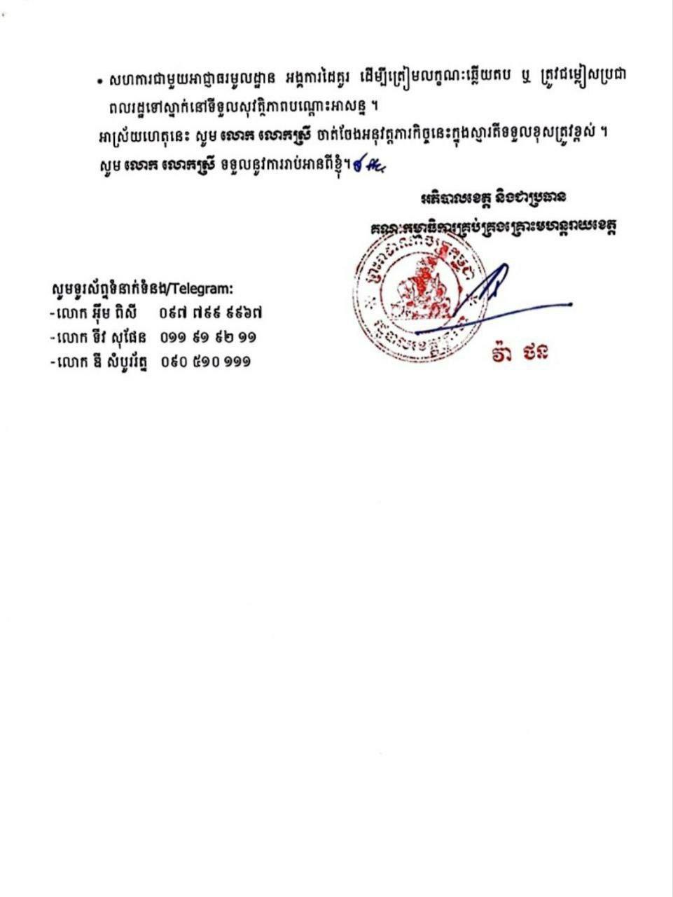 ក្នុងន័យនេះ គណៈកម្មាធិការគ្រប់គ្រងគ្រោះមហន្តរាយខេត្ត សូមណែនាំដូចខាងក្រោម៖