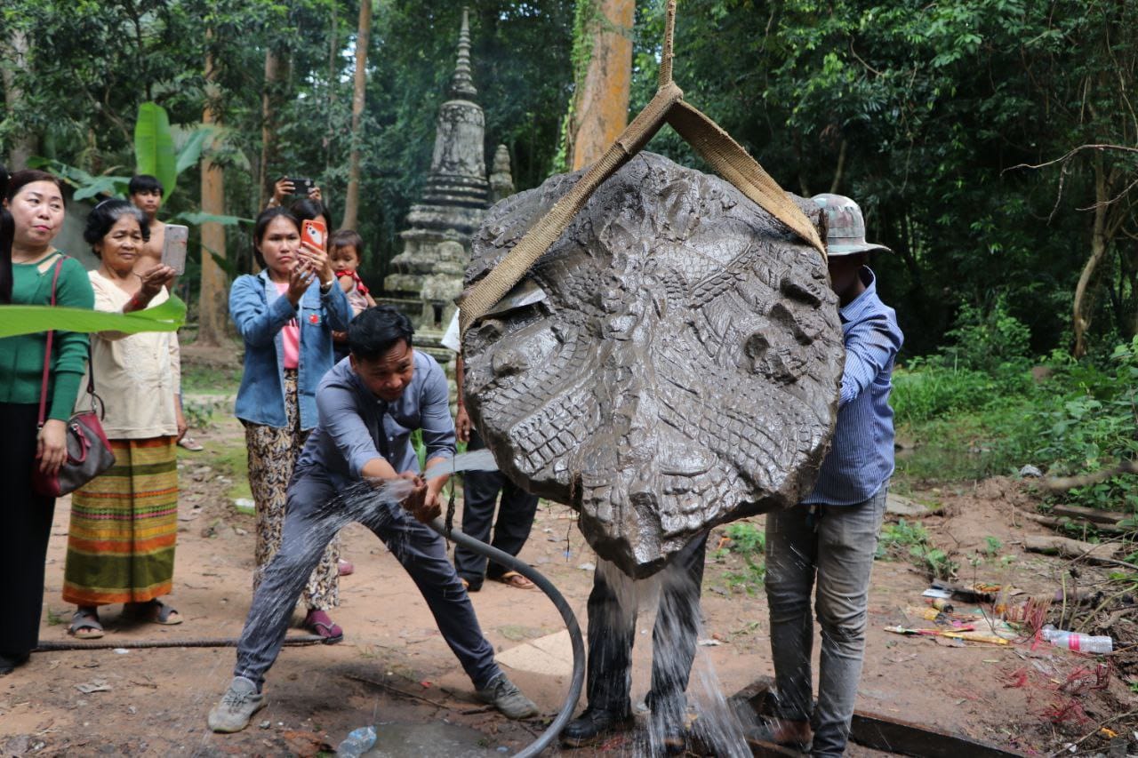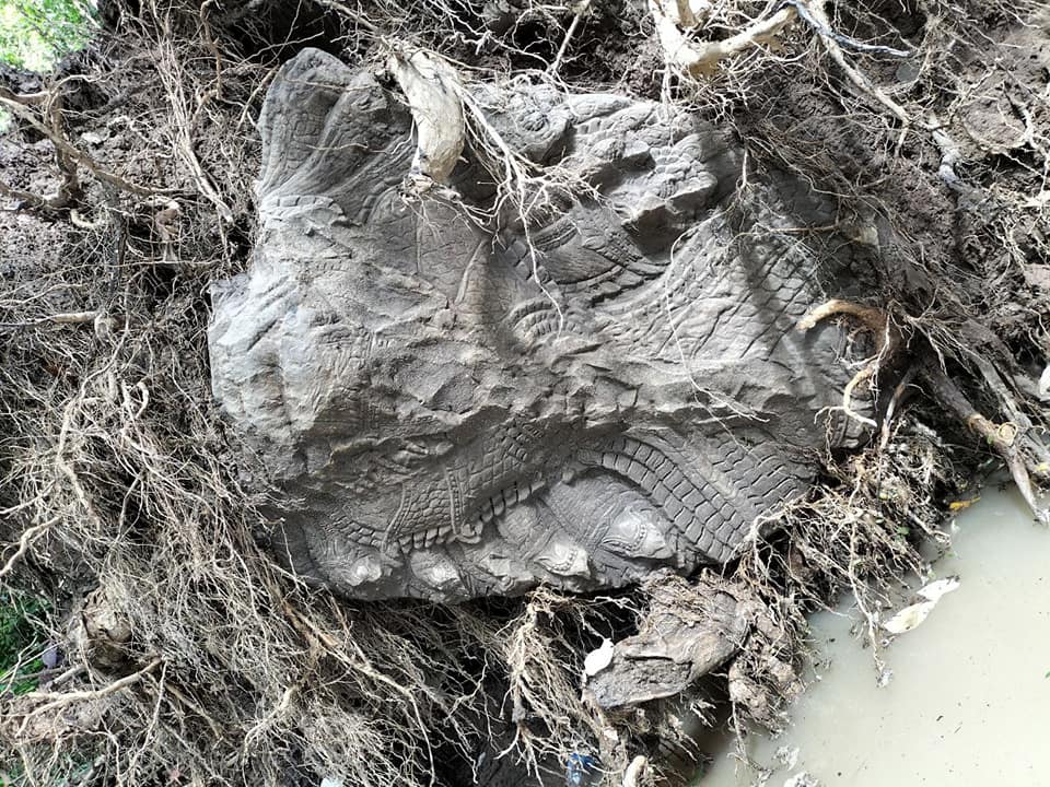 អាជ្ញាធរជាតិអប្សរា ប្រទះឃើញបំណែកចម្លាក់ក្បាលនាគចំនួន១ ក្នុងរចនាបថបាយ័ន កប់ក្នុងដី