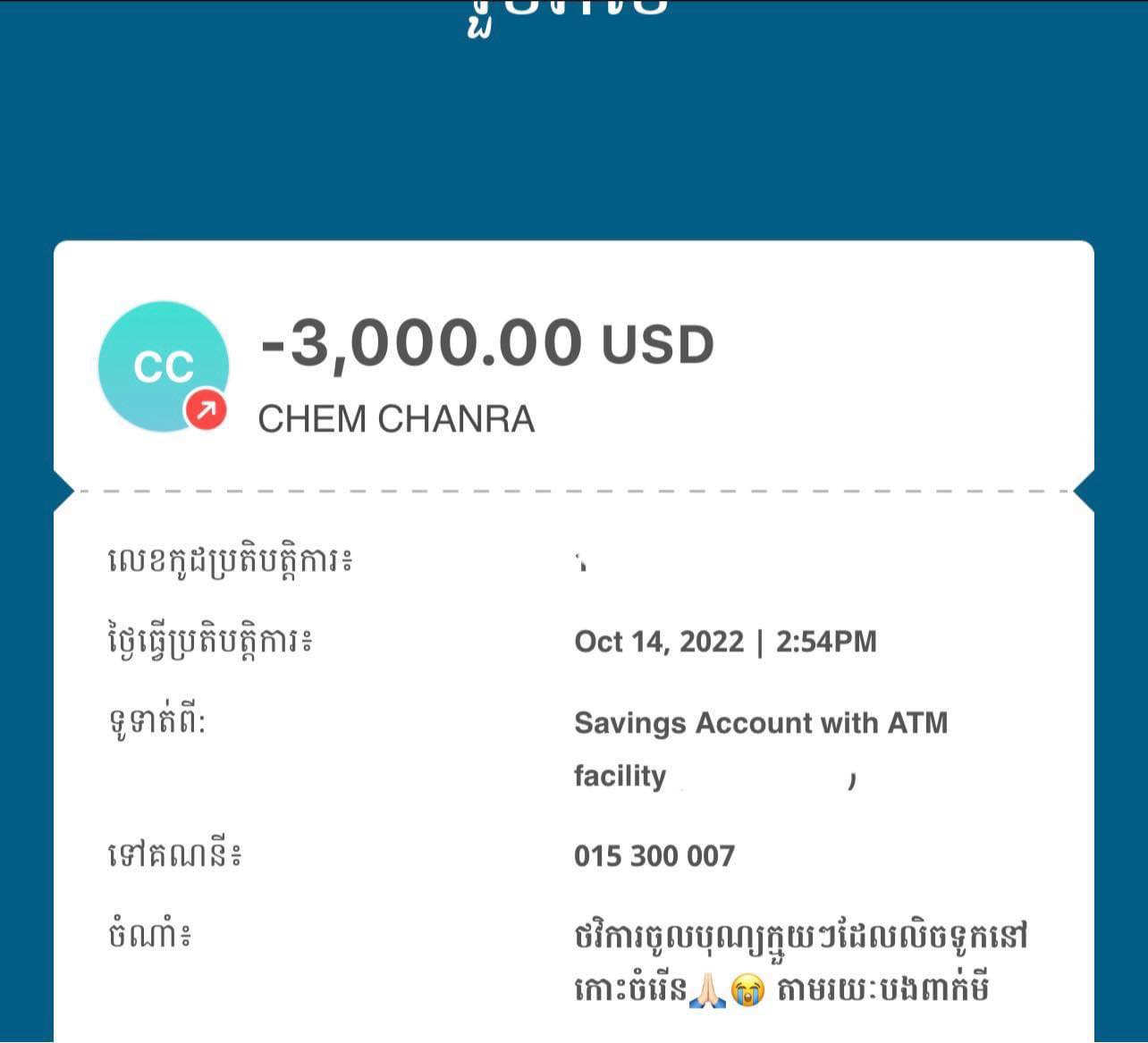 ដោយលោកស្រី នួន ស៊ុន្ទរី បានសរសេររៀបរាប់ថា «នាងខ្ញុំស្រីអូន និងគ្រួសារសូមចូលរួមថវិកា3000$ ជាការរំលែកទុក្ខទៅកាន់គ្រួសារក្មួយៗដែលលិចទូកនៅភូមិកោះចំរើន។ ក្មួយៗអើយមីងរវល់មិនបានទៅផ្ទាល់ មីងខ្លោចចិត្តណាស់មីងសរសេរសារទាំងស្រក់ទឹកភ្នែកណែនទ្រូង កូនគេកូនយើង។ នាងខ្ញុំបានផ្ញើថវិកាតាមរយៈបងពាក់មី។ ថវិកានេះខ្ញុំឱ្យបង ពាក់មី ចាត់ចែងសម្រាប់ចូលរួមបុណ្យដល់ក្មួយៗដែលលាចាកលោក ហើយថវិការខ្លះឧបត្ថម្ភ ដល់ក្មួយៗដែលនៅមាន ជីវិត។ សូមក្មួយៗទៅកាន់សុខគតិភពចុះ មីងកាន់ទុក្ខក្មួយៗ ក្មួយៗលែងបានទៅរៀនទៀតហើយ អាណិតណាស់ជាសិស្សពូកែតស៊ូទៅរៀនរហូត។ #កូនអើយ #ចូលរួមរំលែកទុក្ខ #មីងស្រីអូនកាន់ទុក្ខក្មួយៗនៅភូមិកោះចំរើន»៕ ផ្តល់សិទ្ធិដោយ៖ ខ្មែរណូត
