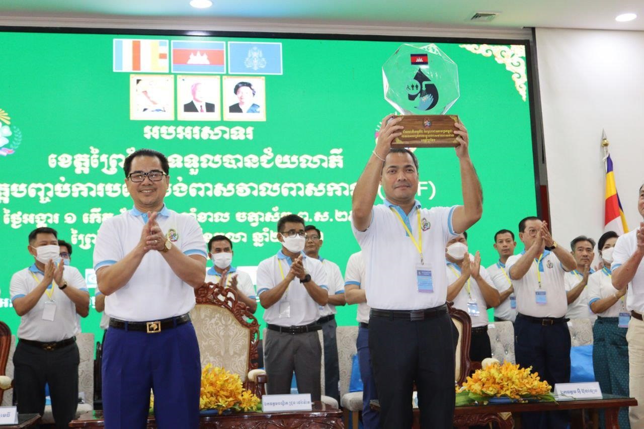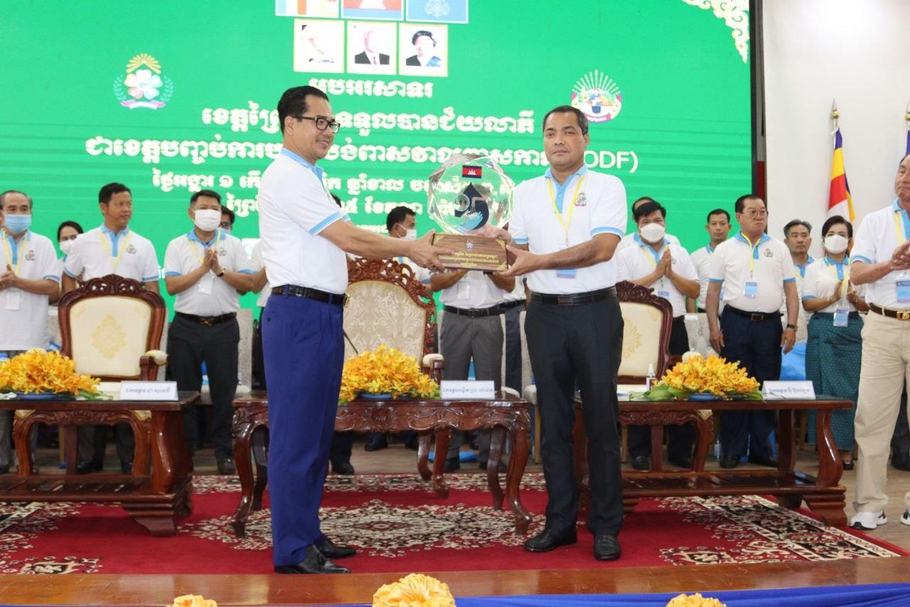 (ព្រៃវែង)៖ លោកបណ្ឌិត ជ្រុន ថេរ៉ាវ៉ាត រដ្ឋលេខាធិការ ក្រសួងអភិវឌ្ឍន៍ជនបទ តំណាងលោកបណ្ឌិតសភាចារ្យ អ៊ុក រ៉ាប៊ុន រដ្ឋមន្ត្រីក្រសួងអភិវឌ្ឍន៍ជនបទ នាព្រឹកថ្ងៃទី២៥ ខែតុលា ឆ្នាំ២០២២នេះ បានអញ្ជើញប្រកាសទទួលស្គាល់ជាផ្លូវការខេត្តព្រៃវែង ជាខេត្តទី២ របស់កម្ពុជា ដែលបានបញ្ចប់ការបន្ទោបង់ពាសវាលពាសកាល (2 ODF Province Celebration, Prey Veng)។