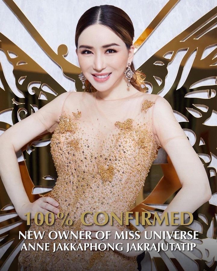 សេចក្តីប្រកាសថ្ងៃសេដ្ឋីនីថៃ អ្នកនាង Anne Jakapong Jakrajutatip នាយកប្រតិបត្តិរបស់ JKN Global Group បានក្លាយជាអ្នកគ្រប់គ្រង Miss Universe ។ ខណៈមិនទាន់បានប្រាប់ពីការចំណាយនៃការទិញ ប្រភពមិនច្បាស់ការមួយបានលើកឡើងថាមហាសេដ្ឋី Ann Chakrabongse បានចំណាយថវិកាចំនួន ៥៥០លានបាត ($14,473,684.50 USD) សម្រាប់ JKN ទិញMiss Universe Organization។