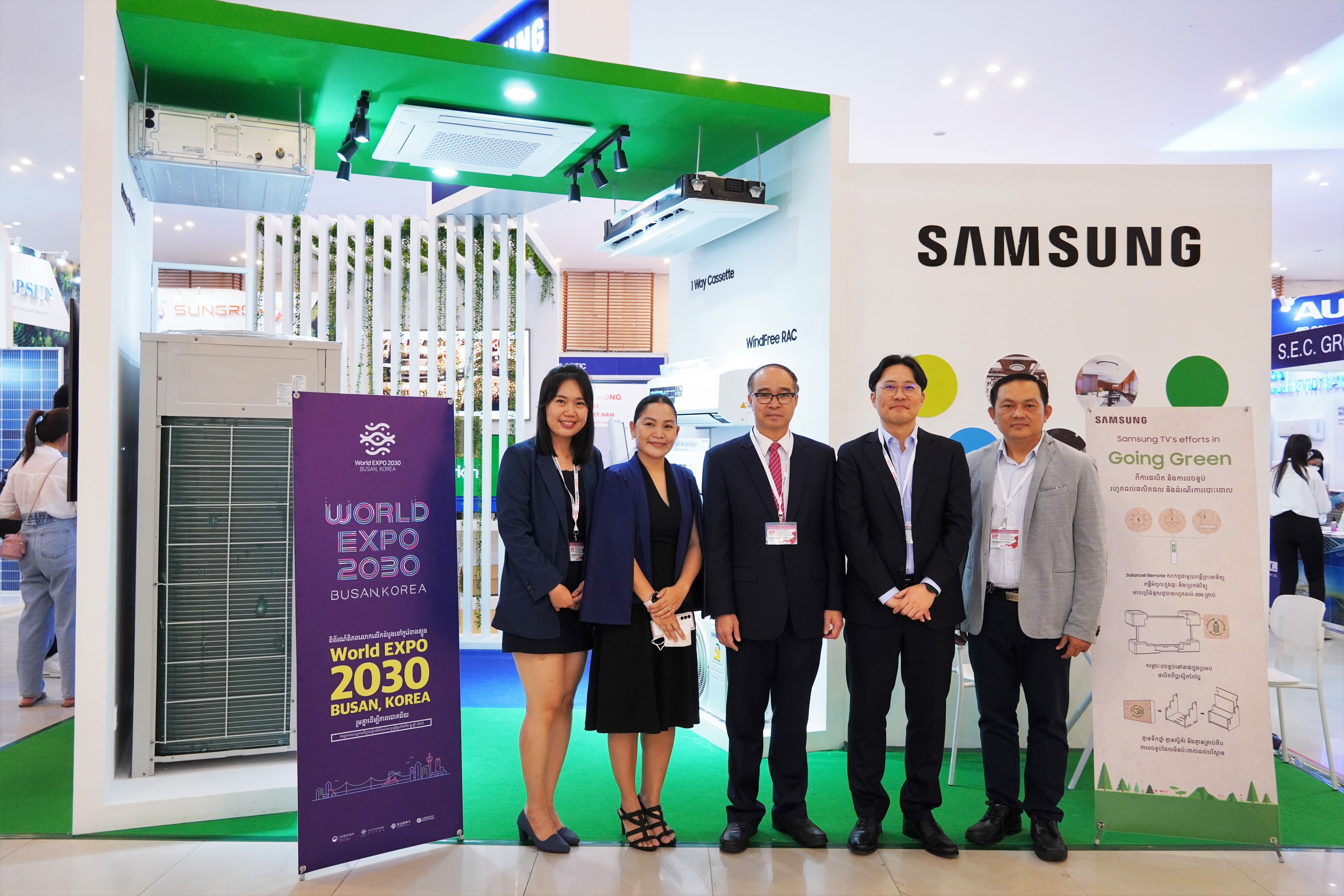 ភ្នំពេញថ្ងៃទី ១៧ ខែវិច្ជិកា ឆ្នាំ ២០២២៖ សាខាក្រុមហ៊ុន ថៃ សាមសុង អេឡិចត្រូនិក ប្រចាំប្រទេសកម្ពុជាបានចូលរួមក្នុងកម្មវិធីតាំងពិព័រណ៌ “CAMBUILD” ដើម្បីធ្វើការដាក់តាំងបង្ហាញ ទស្សនវិស័យចេរភាពនៃបរិស្ថាន (Sustainability of Environment) របស់ក្រុមហ៊ុនសាមសុង និងការបង្ហាញពីផលិតផលសាមសុងព្រមទាំង បច្ចេកវិទ្យាទំនើបផ្សេងៗរបស់សាមសុងផងដែរ ។