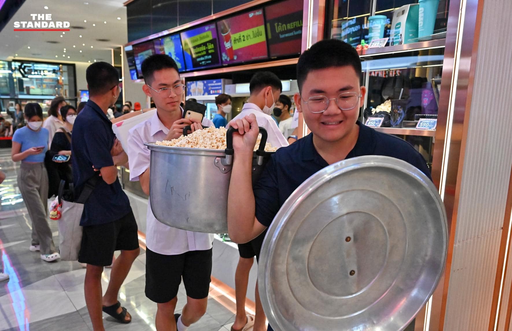 (បាងកក)៖ មានការចែករំលែកពាសពេញបណ្តាញសង្គម នូវរូបភាពនៅរោងភាពយន្តមួយនៅក្រុងបាងកក ដែលអតិថិជនជាច្រើនបានកាន់របស់របរដែលមានទំហំធំ និងប្លែកៗ ដើម្បីដាក់ពោតផ្ទុះដែលដាក់ម៉ាសេរីមិនមានដែនកំណត់។ បើយោងតាមការចុះផ្សាយរបស់ nation Thailand នេះជាការផ្តល់ជូនរយៈពេលមួយថ្ងៃ ដែលរៀបចំដោយក្រុមហ៊ុន SF Group នៅ មជ្ឈមណ្ឌលផ្សារទំនើប CentralWorld គឺមានតែនៅថ្ងៃទី២៨ ខែវិច្ឆិកា។