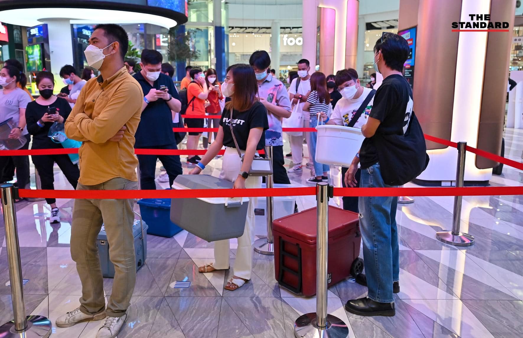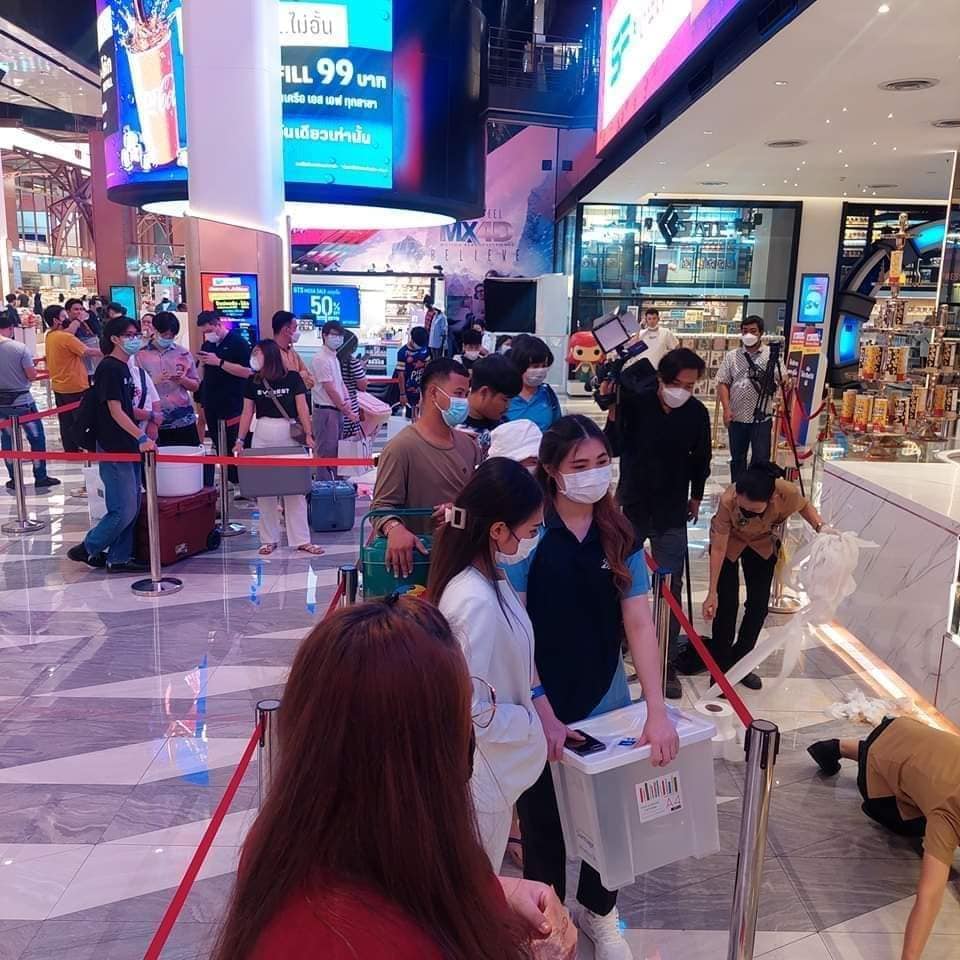រូបភាពប្លែកៗនៅថៃ! ពោតផ្ទុះត្រឹម៥ដុល្លារ ដាក់ម៉ាសេរី ម្នាក់ៗកាន់ធុងស្នោ ធុងទឹកកក តម្រង់ជួរចាំយក ផ្អើលរោងកុន