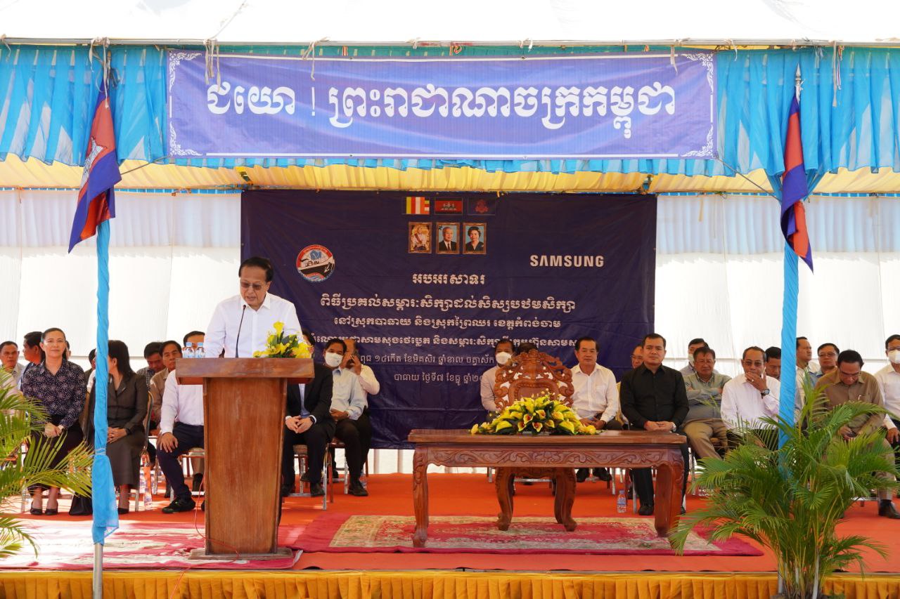 យុទ្ធនាការសប្បុរសធម៌របស់ក្រុមហ៊ុន សាមសុង បានប្រព្រឹត្តទៅនៅថ្ងៃទី០៧ ខែធ្នូ ឆ្នាំ២០២២ ក្រោមអធិបតីភាពដ៏ខ្ពង់ខ្ពស់ ឯកឧត្តម ប៉ាន សូរស័ក្តិ រដ្ឋមន្ត្រីនៃក្រសួងពាណិជ្ជកម្ម និងមន្ត្រីជាន់ខ្ពស់នៃក្រសួងពាណិជ្ជកម្មជាច្រើនរូប ព្រមទាំងអភិបាលខេត្ត អភិបាលស្រុករង លោកគ្រូ អ្នកគ្រូ និងសិស្សានុសិស្សមកពី ស្រុកបាធាយ និងស្រុកព្រៃឈរ។ គោលបំណងសំខាន់នៃសកម្មភាពសប្បុរសធម៌ដែលក្រុមហ៊ុន សាមសុង តែងតែធ្វើ និងកំពុងធ្វើនាពេលនេះ គឺដើម្បីផ្ដល់នូវភាពងាយស្រួលដល់សិស្សានុសិស្ស និងបំពេញការខ្វះខាតក្នុងការរៀនភាសា ក៏ដូចជាពង្រឹងសម្ថតភាពក្នុងការប្រើប្រាស់ភាសាបន្ថែមតាមរយៈការប្រើប្រាស់ Tablet របស់ក្រុមហ៊ុន សាមសុង។