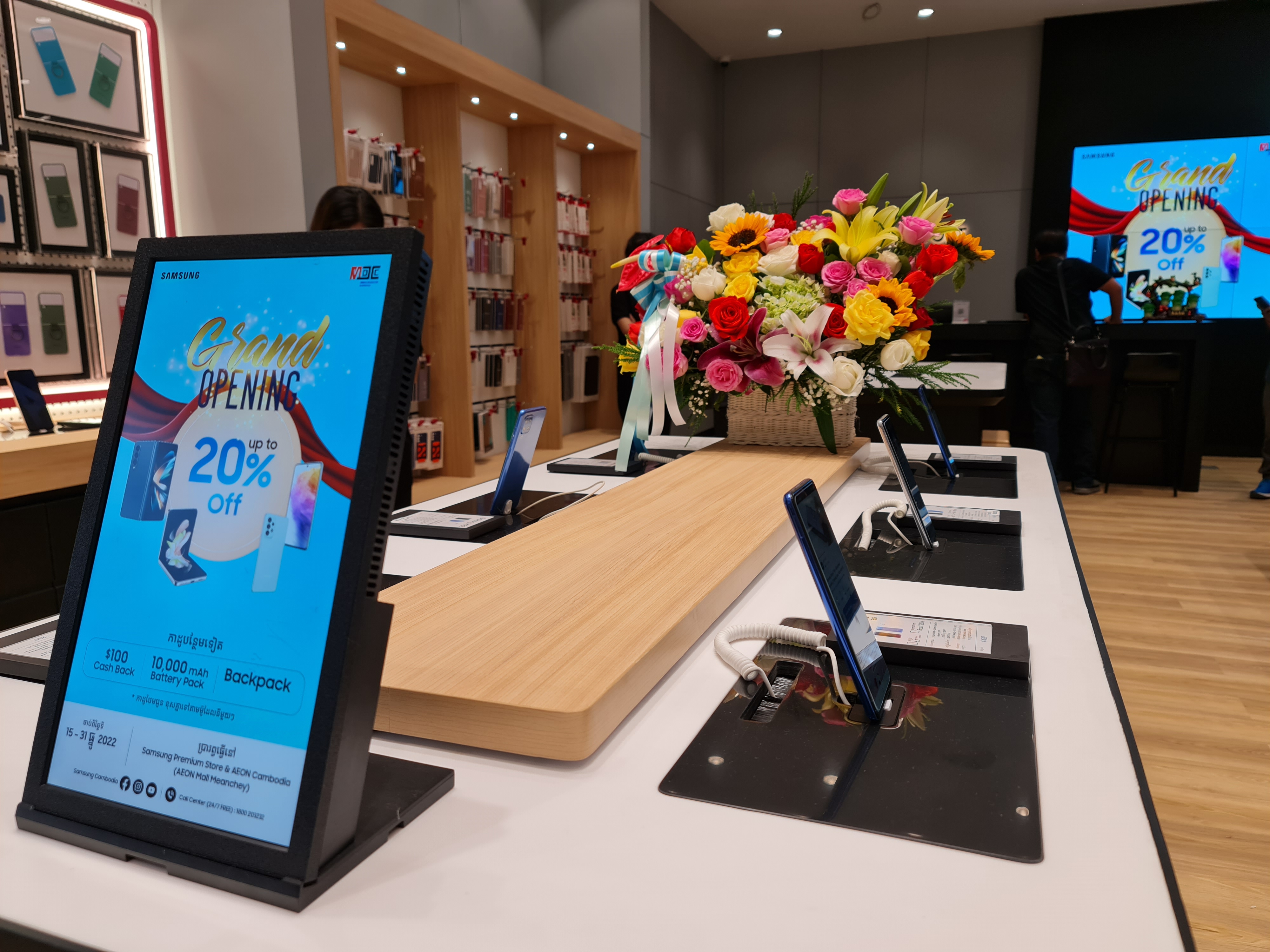 ដូចជាពេលនេះចឹង ក្រុមហ៊ុន សាមសុង ក៏បានពង្រីកបន្ថែមនូវសាខាហាងផលិតផលសាមសុង ថ្មីមួយទៀតដែលមានទីតាំងនៅផ្សារទំនើប AEON MALL Mean Chey (AEON3) ដែលបានធ្វើការបើកសម្ពោធជាផ្លូវការនៅថ្ងៃទី15 ធ្នូ ចុងឆ្នាំ 2022 នេះ ដែលមានការចូលរួមពីសំណាក់អ្នកគាំទ្រយ៉ាងកុះករ ក្នុងការចូលទស្សនា និងទិញនូវផលិតផលរងបស់សាមសុង។