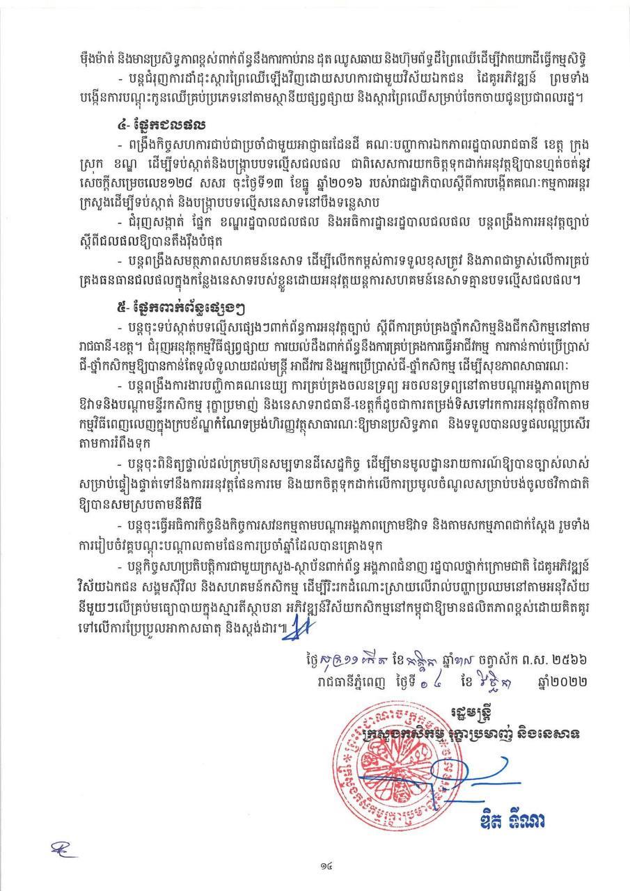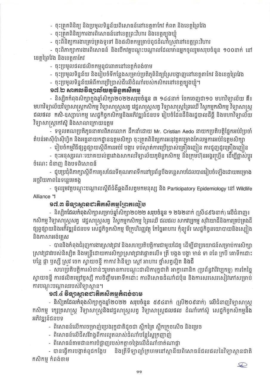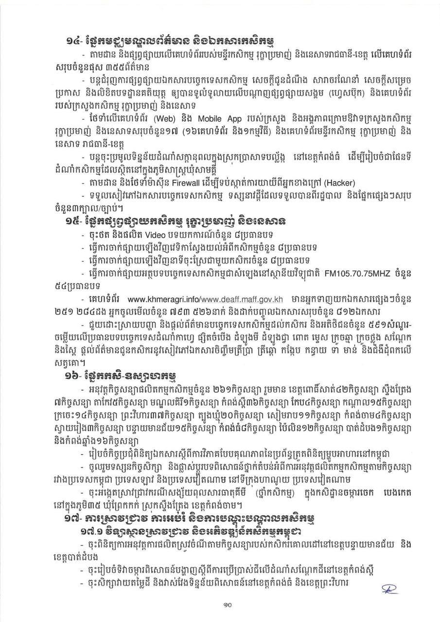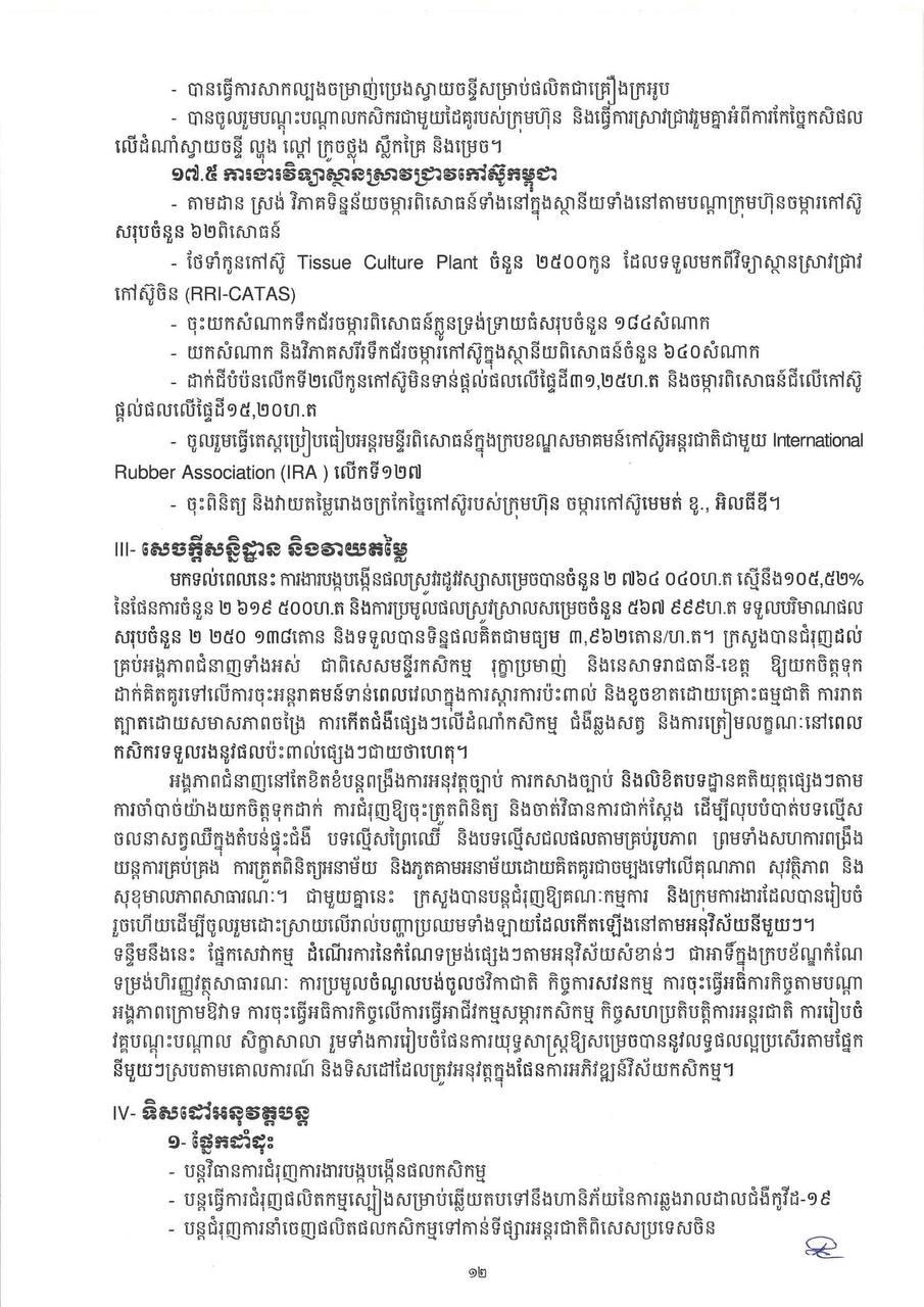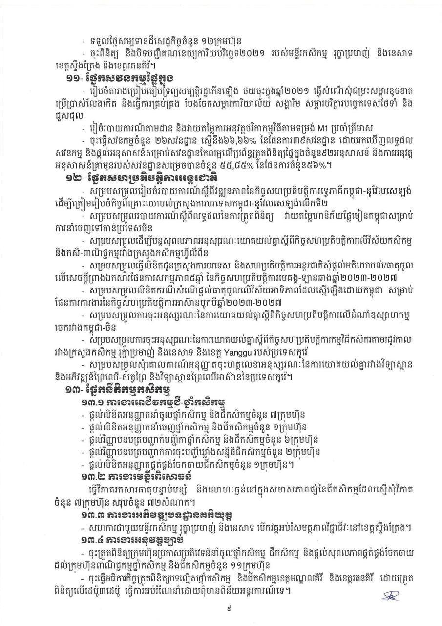 * ការនាំចេញកសិផលក្រៅពីស្រូវ-អង្ករមានបរិមាណ ៤ ៦៦៩ ៩៧៤តោន កើនឡើងចំនួន ៤៤៨ ៨២១តោន (១០.៦៣%) មានទឹកប្រាក់ ២ ១៤១ ៦៦១ ៨៣០ដុល្លារ។