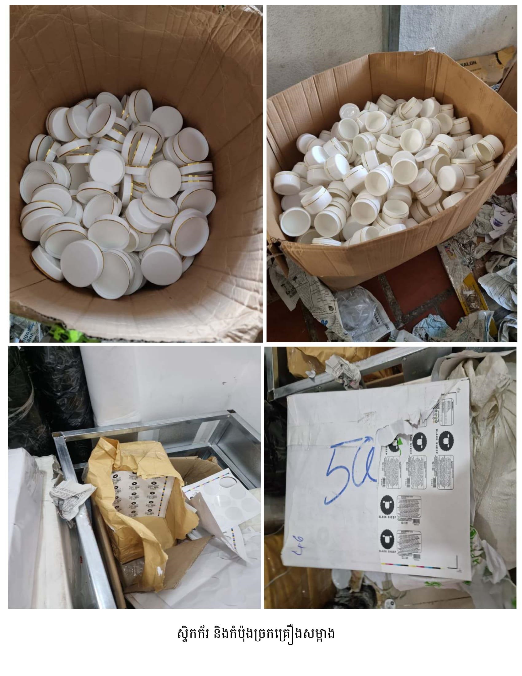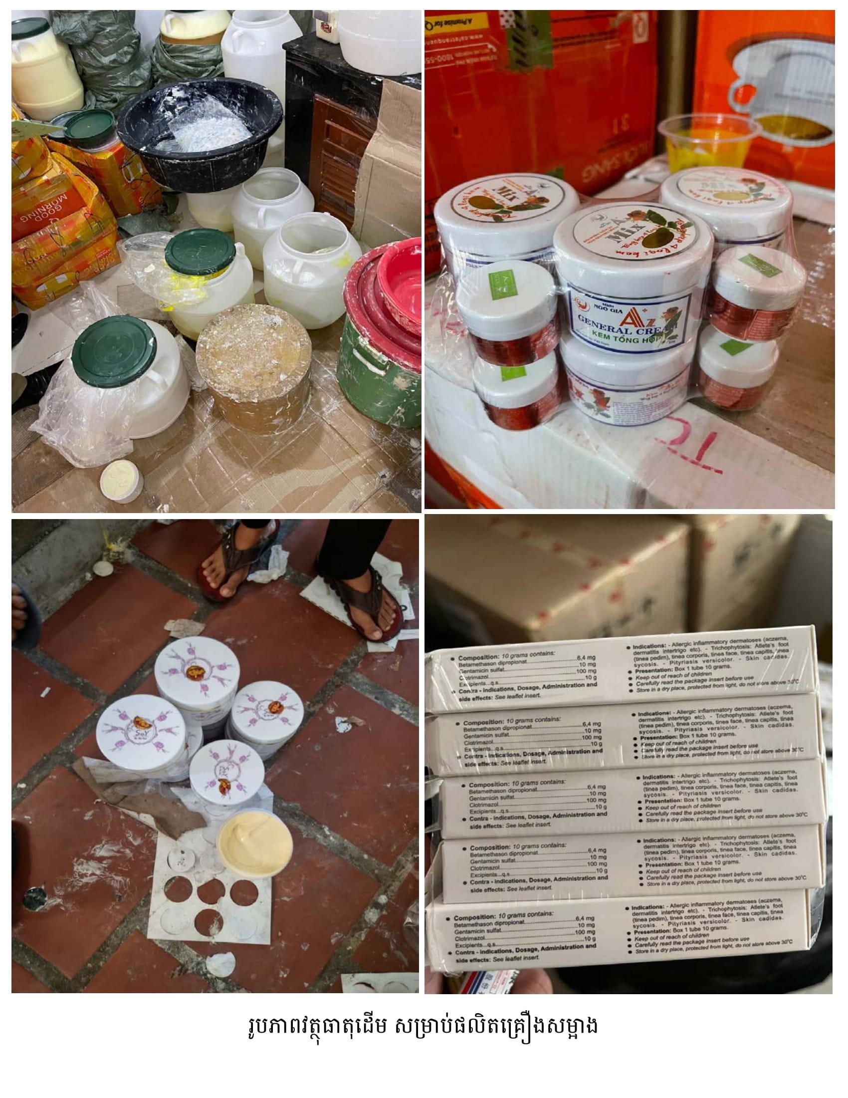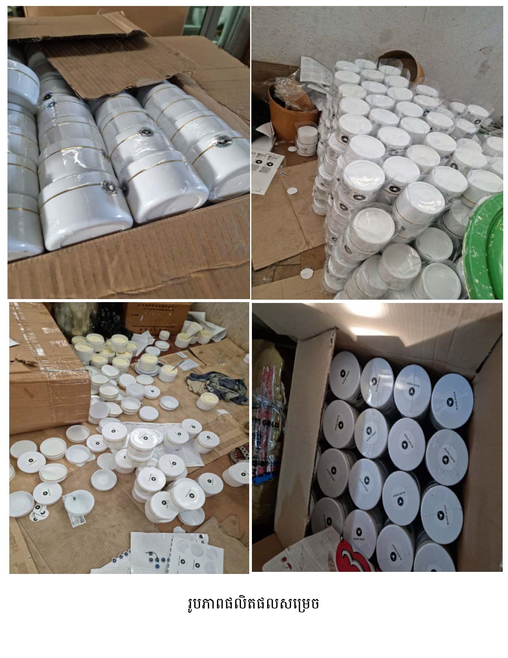 នាយឧត្តមសេនីយ៍ មៀច សុផាន់ណា ប្រធានគណៈកម្មាធិការប្រយុទ្ធប្រឆាំងផលិតផលក្លែងក្លាយ ក្នុងសន្និសីទសារព័ត៌មាន នៅរសៀលថ្ងៃទី២៦ ខែធ្នូ ឆ្នាំ២០២២នេះ បានឲ្យដឹងថា ក្នុងប្រតិបត្តិការបង្ក្រាបទីតាំងនេះ កម្លាំងចម្រុះរបស់គណៈកម្មាធិការ (គ.ប.ផ.ក.) បានរកឃើញផលិតផលគ្រឿងសម្អាងជាច្រើនតោន រួមមាន៖