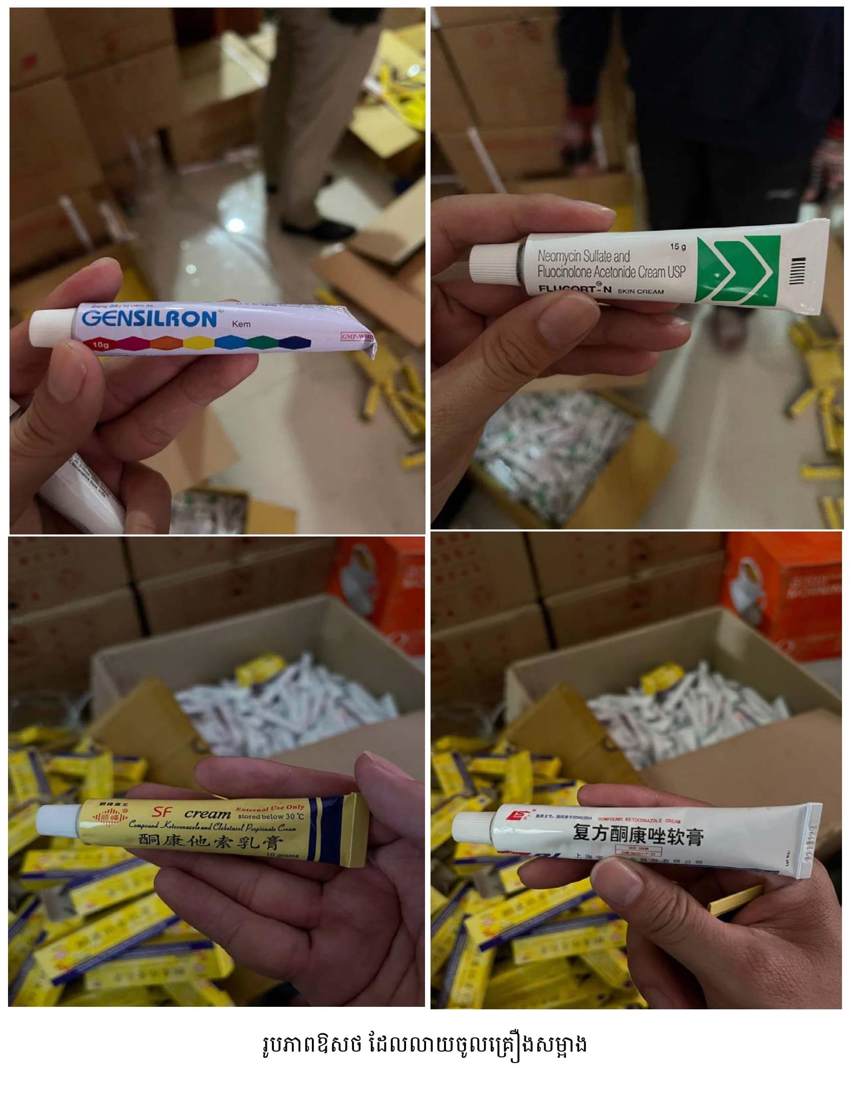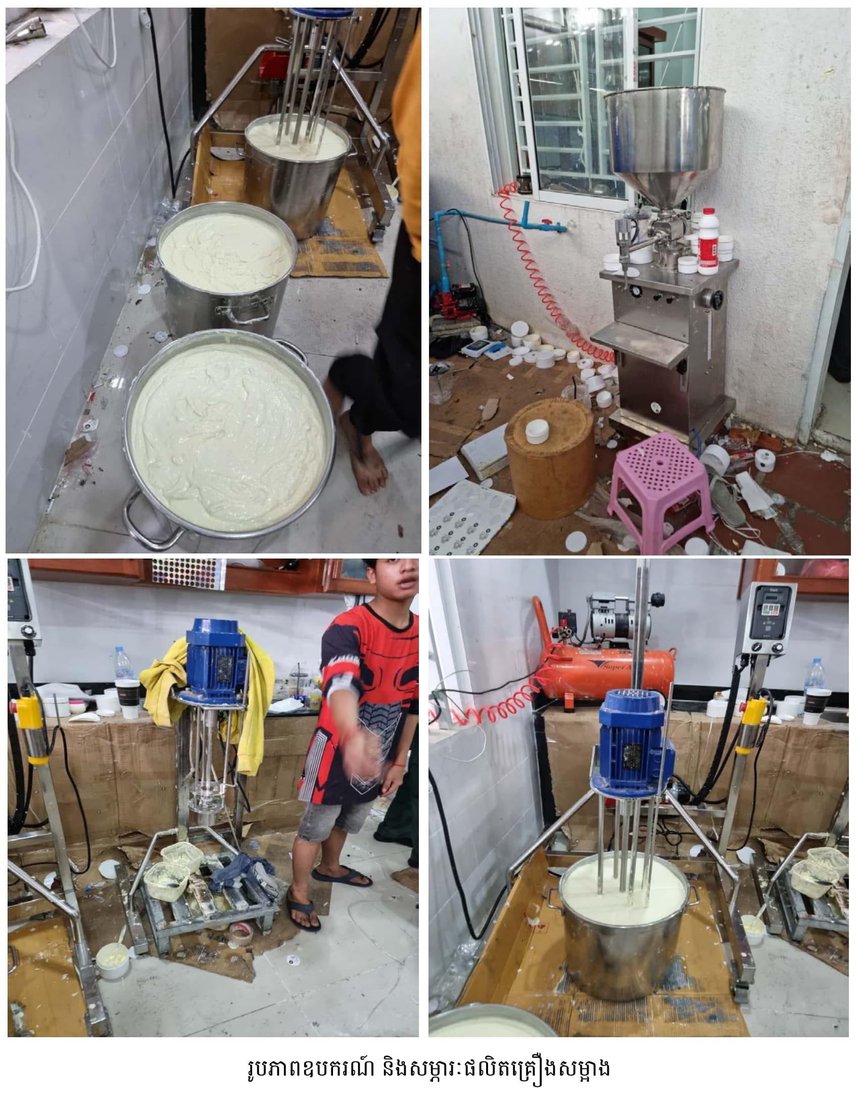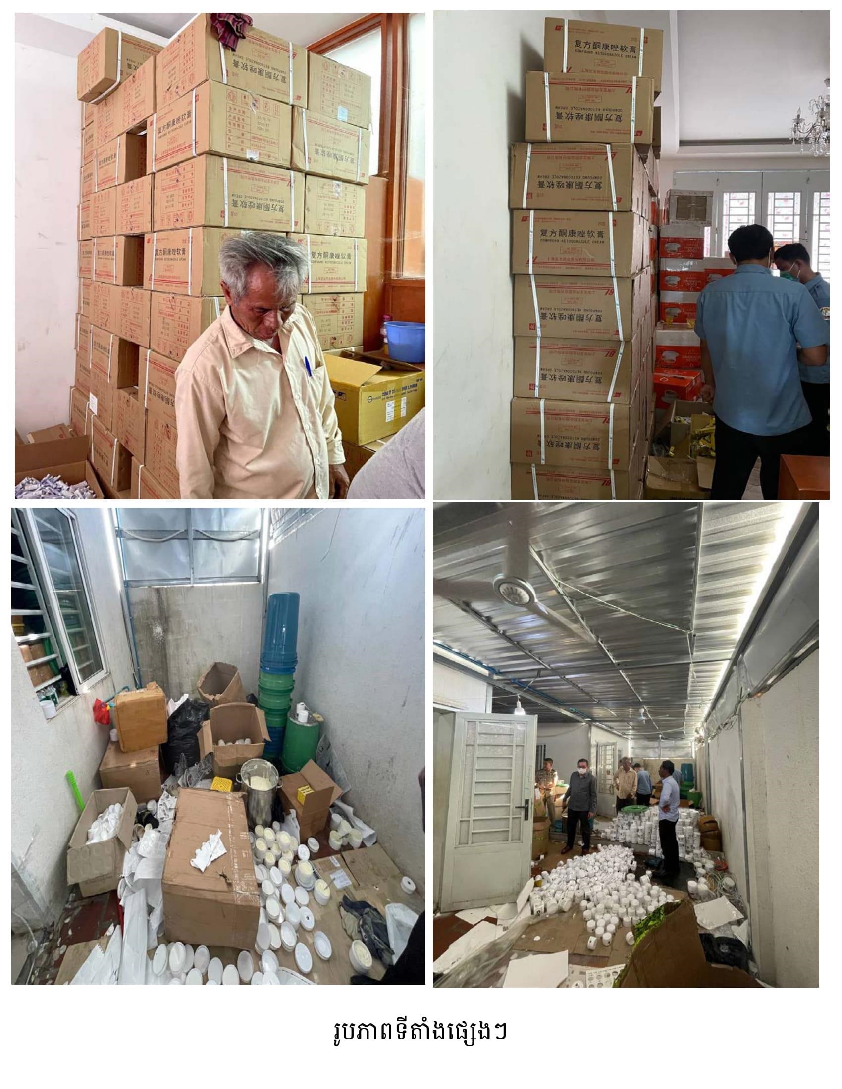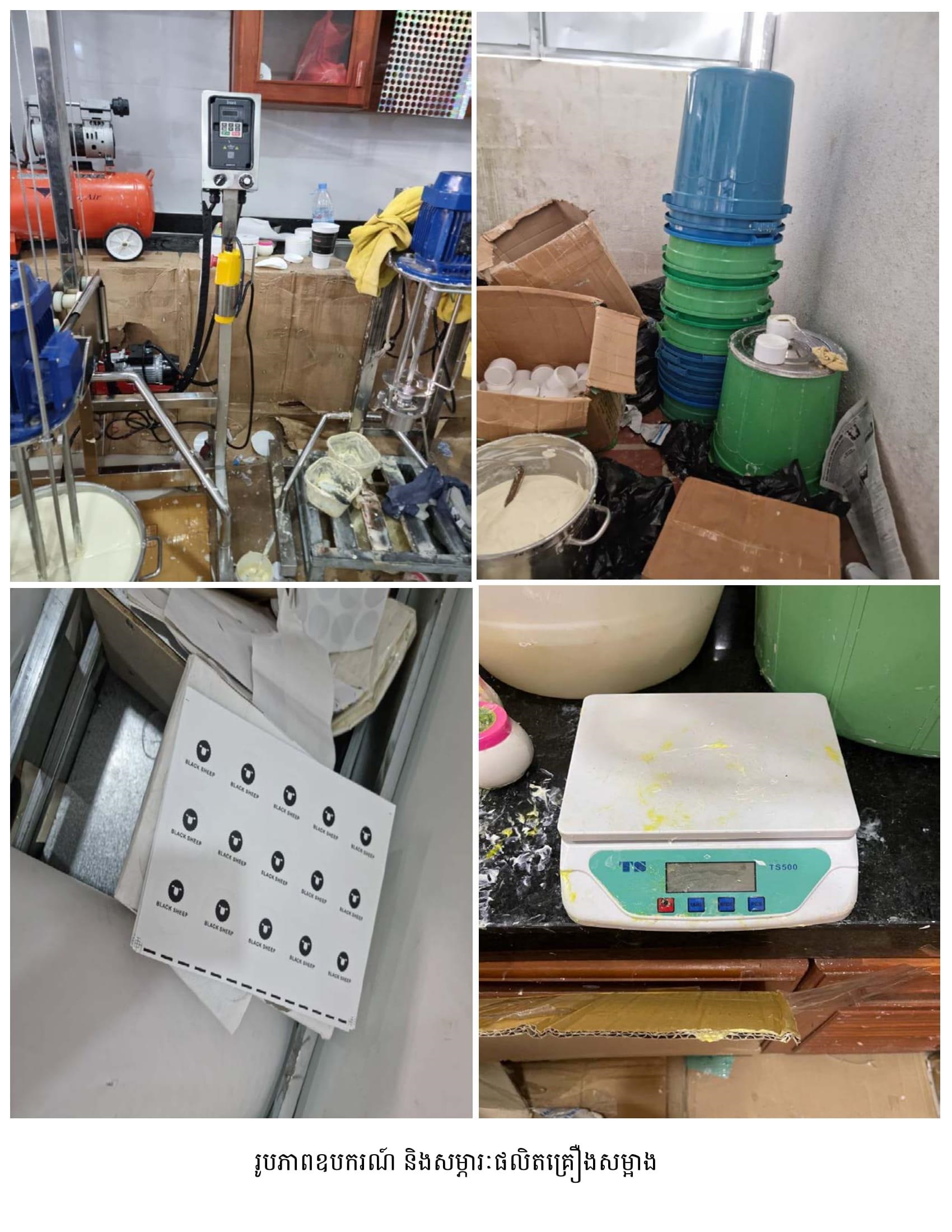នាយឧត្តមសេនីយ៍ មៀច សុផាន់ណា ប្រធានគណៈកម្មាធិការប្រយុទ្ធប្រឆាំងផលិតផលក្លែងក្លាយ ក្នុងសន្និសីទសារព័ត៌មាន នៅរសៀលថ្ងៃទី២៦ ខែធ្នូ ឆ្នាំ២០២២នេះ បានឲ្យដឹងថា ក្នុងប្រតិបត្តិការបង្ក្រាបទីតាំងនេះ កម្លាំងចម្រុះរបស់គណៈកម្មាធិការ (គ.ប.ផ.ក.) បានរកឃើញផលិតផលគ្រឿងសម្អាងជាច្រើនតោន រួមមាន៖