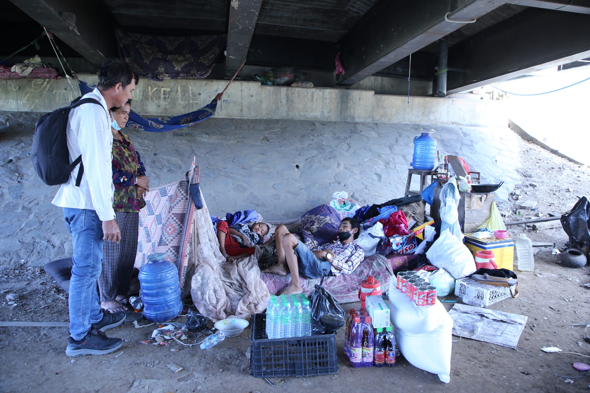 លោក លី សុធី ប្រធានមន្ទីរសង្គមកិច្ច អតីតយុទ្ធជន និងយុវនីតិសម្បទាខេត្តកណ្ដាល បានឱ្យដឹងផងដែរថា កន្លងមកមន្ទីរសង្គមកិច្ច និងអង្គការមិត្តសម្លាញ់ បានធ្វើការចុះជួបពួកគាត់ជាប្រចាំ នឹងបានជួលផ្ទះឱ្យពួកគាត់ស្នាក់នៅ ព្រមទាំងបង្កើតមុខរបរចិញ្ចឹមជីវិតសម្រាប់ពួកគាត់ផងដែរ។ ប៉ុន្តែបន្ទាប់មកក្រុមគ្រួសាររបស់ពួកគាត់មានការបែកបាក់មិនចុះសម្រុងគ្នា ធ្វើឱ្យលោក ប្រាក់ សុភ័ក្រ មានការបាក់ទឹកចិត្ត និងបានត្រឡប់មកស្នាក់នៅក្រោមស្ពាននេះបន្តទៀត។